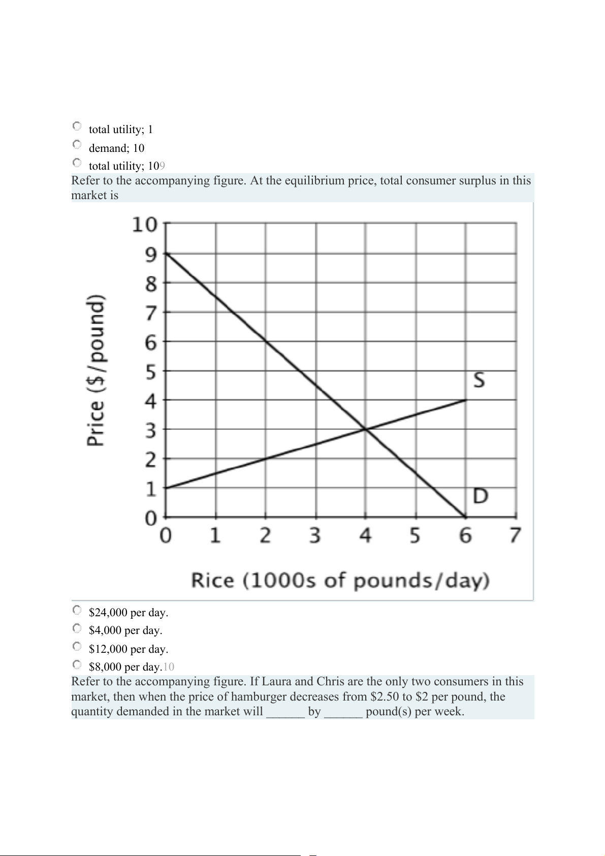 Refer to the accompanying figure. At the equilibrium price, total consumer surplus in this market is $24,000 per day. $4,000 per day. $12,000 per day. $8,000 per day.10