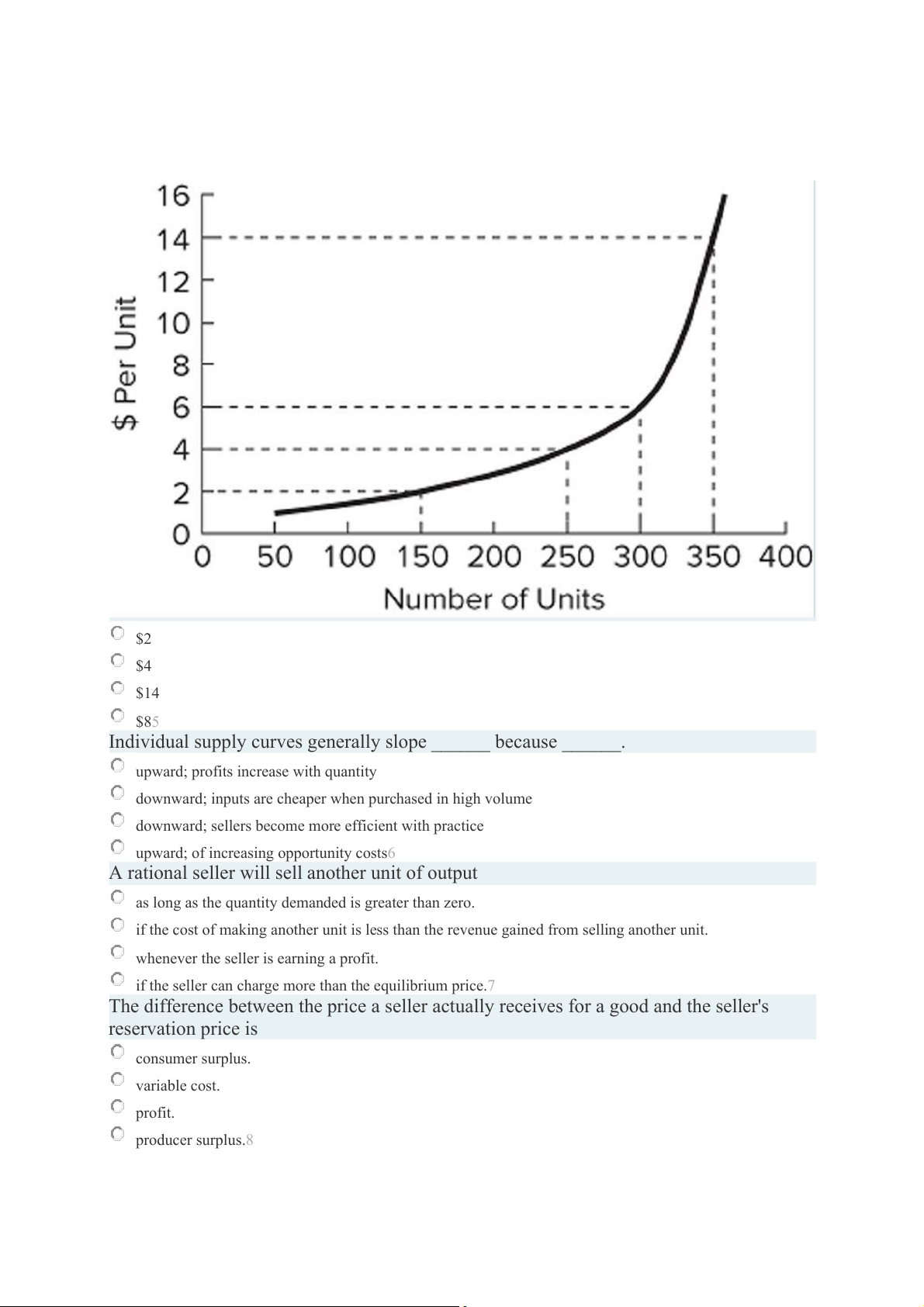 What is this seller's reservation price for the 250th unit? $2 $4 $14 $85