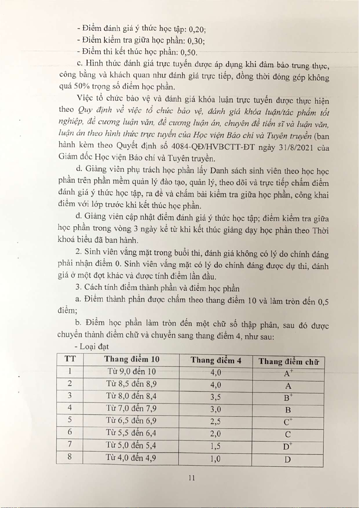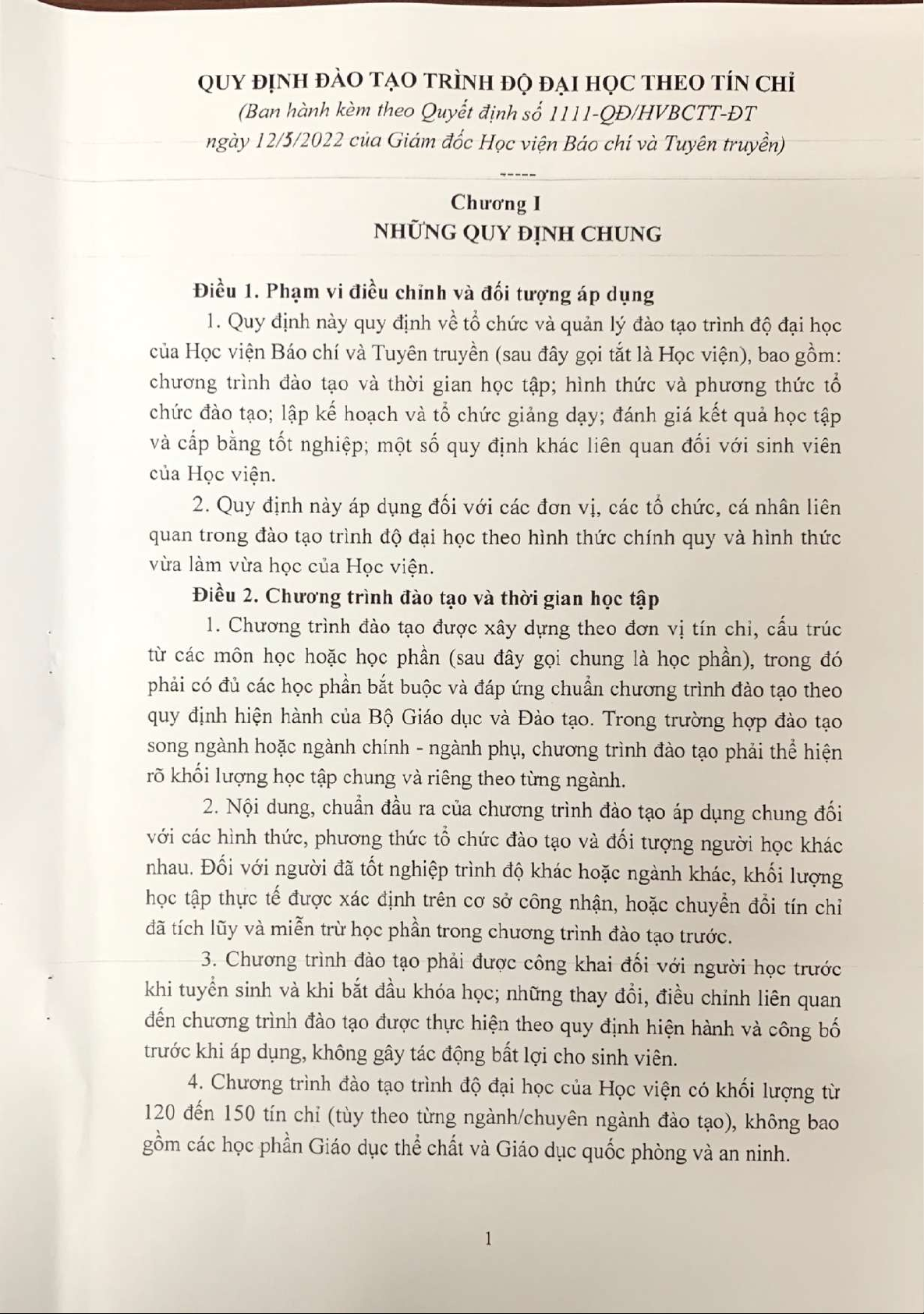 Quy chế đào tạo đại học theo hệ thống tín chỉ môn Quản lý đào tạo | Học viện Báo chí và Tuyên truyền