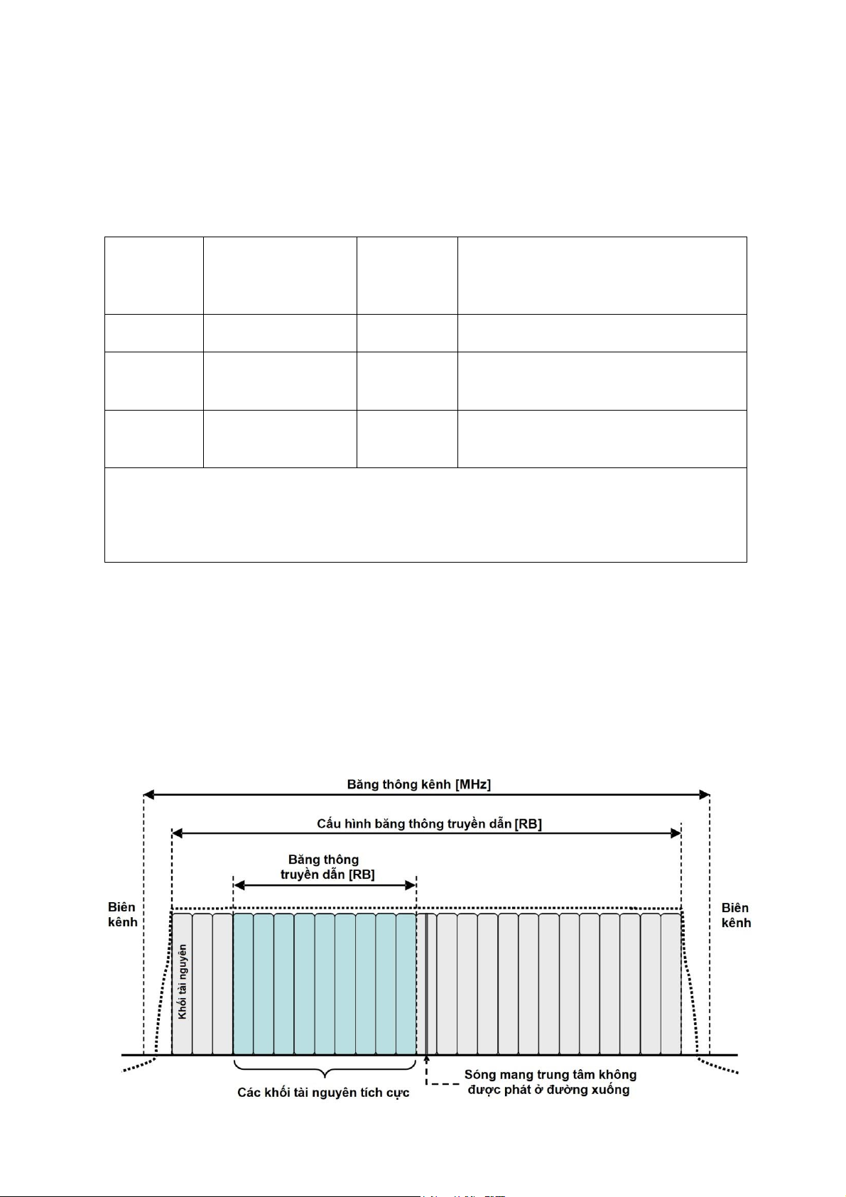 Bảng 11 - Ranh giới ΔfOOB giữa kênh E-UTRA và miền phát xạ giả Băng thông kênh 5 MHz 10 MHz 15 MHz 20 MHz ΔfOOB(MHz) 10 15 20 25