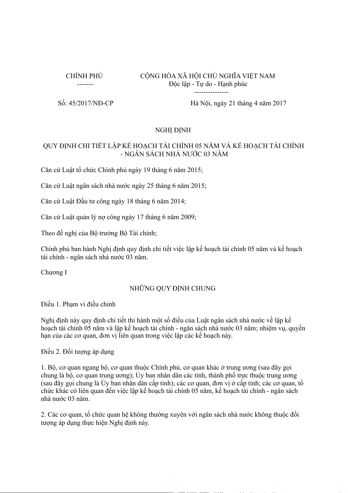 Độc lập - Tự do - Hạnh phúc --------------- Số: 45/2017/NĐ-CP
