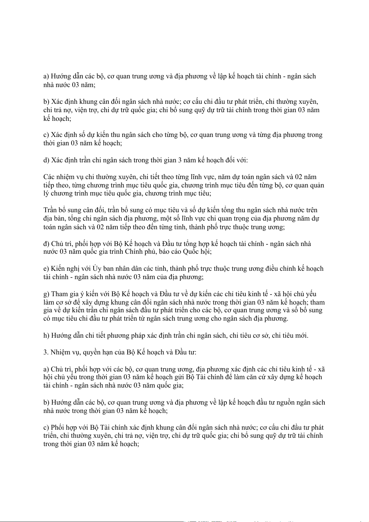 chính - ngân sách nhà nước 03 năm, Bộ Kế hoạch và Đầu tư: