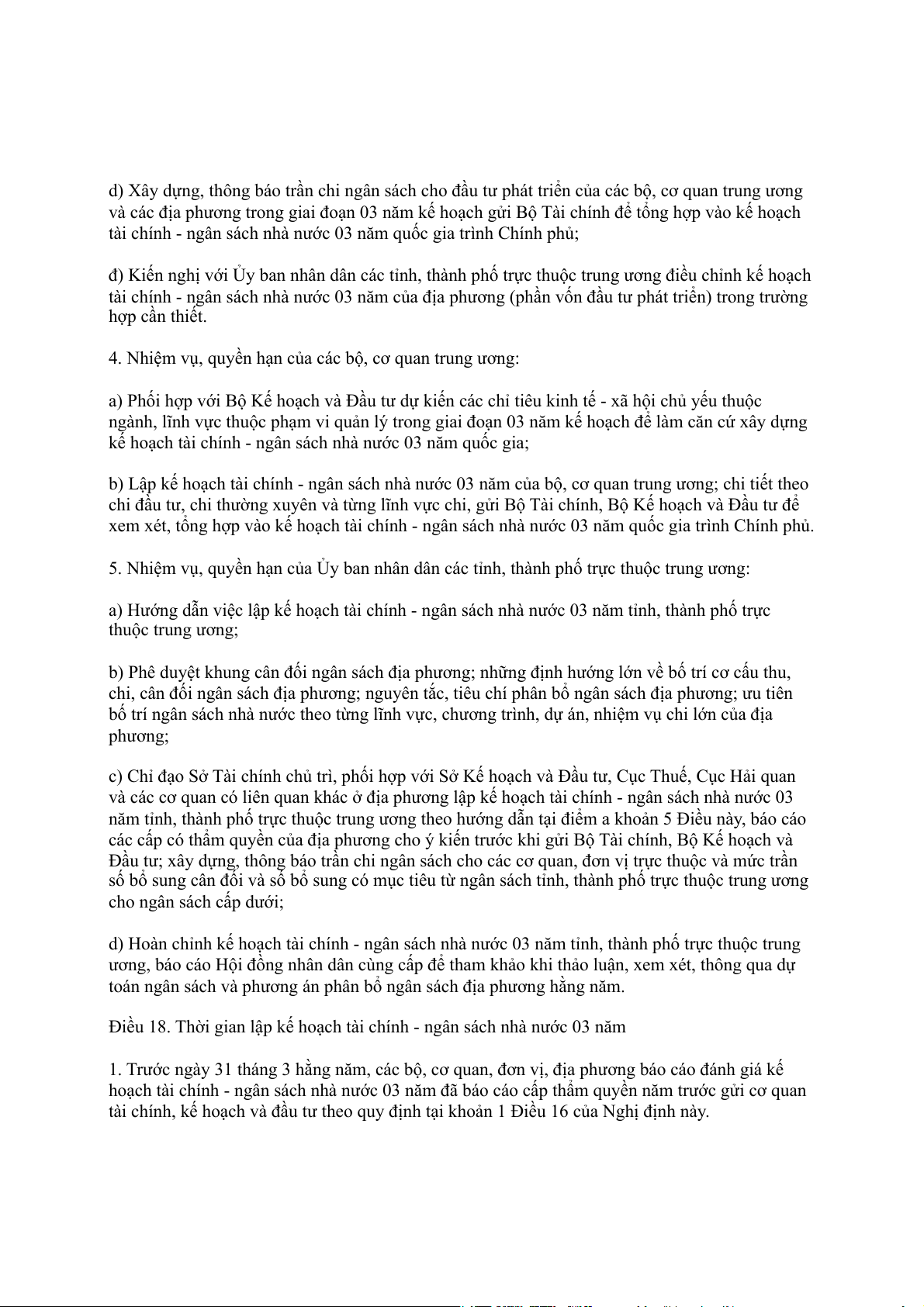 Điều 18. Thời gian lập kế hoạch tài chính - ngân sách nhà nước 03 năm