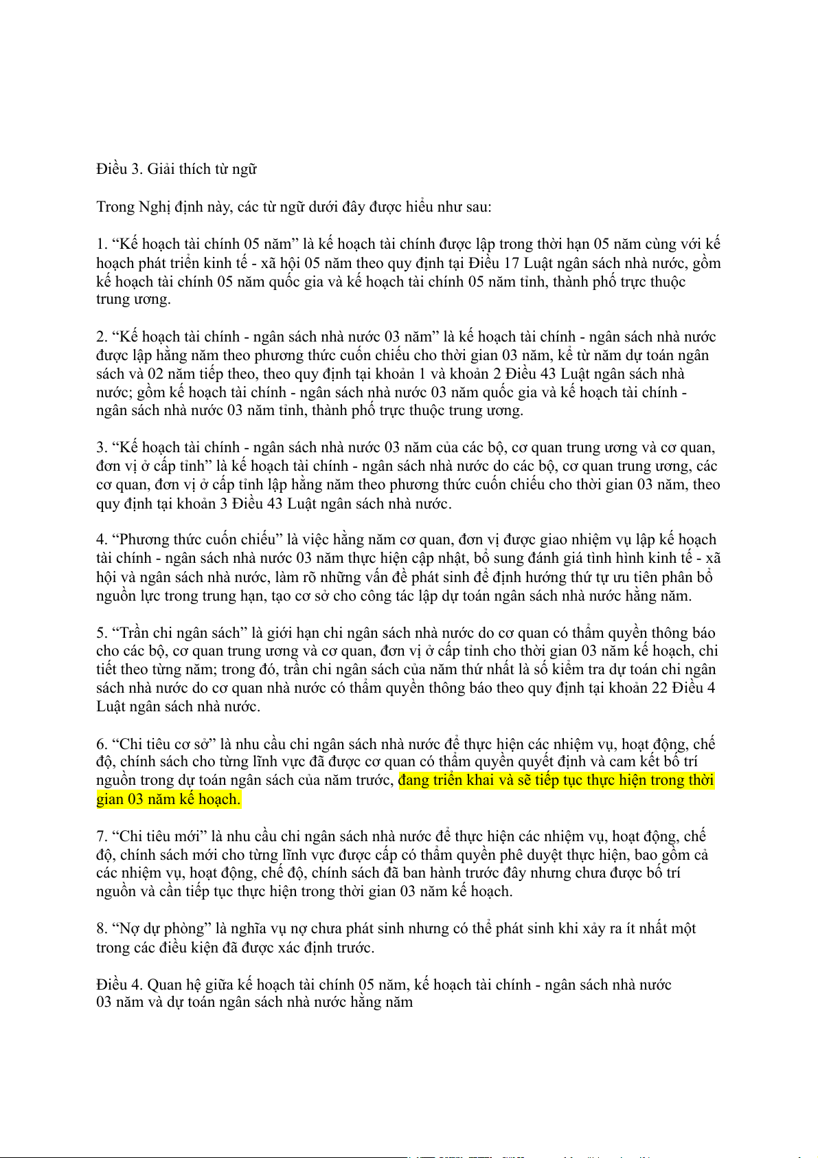 6. “Chi tiêu cơ sở” là nhu cầu chi ngân sách nhà nước để thực hiện các nhiệm vụ, hoạt động, chế