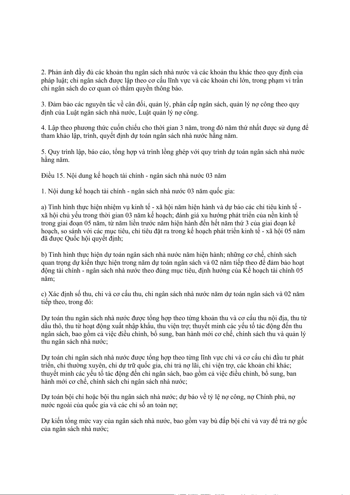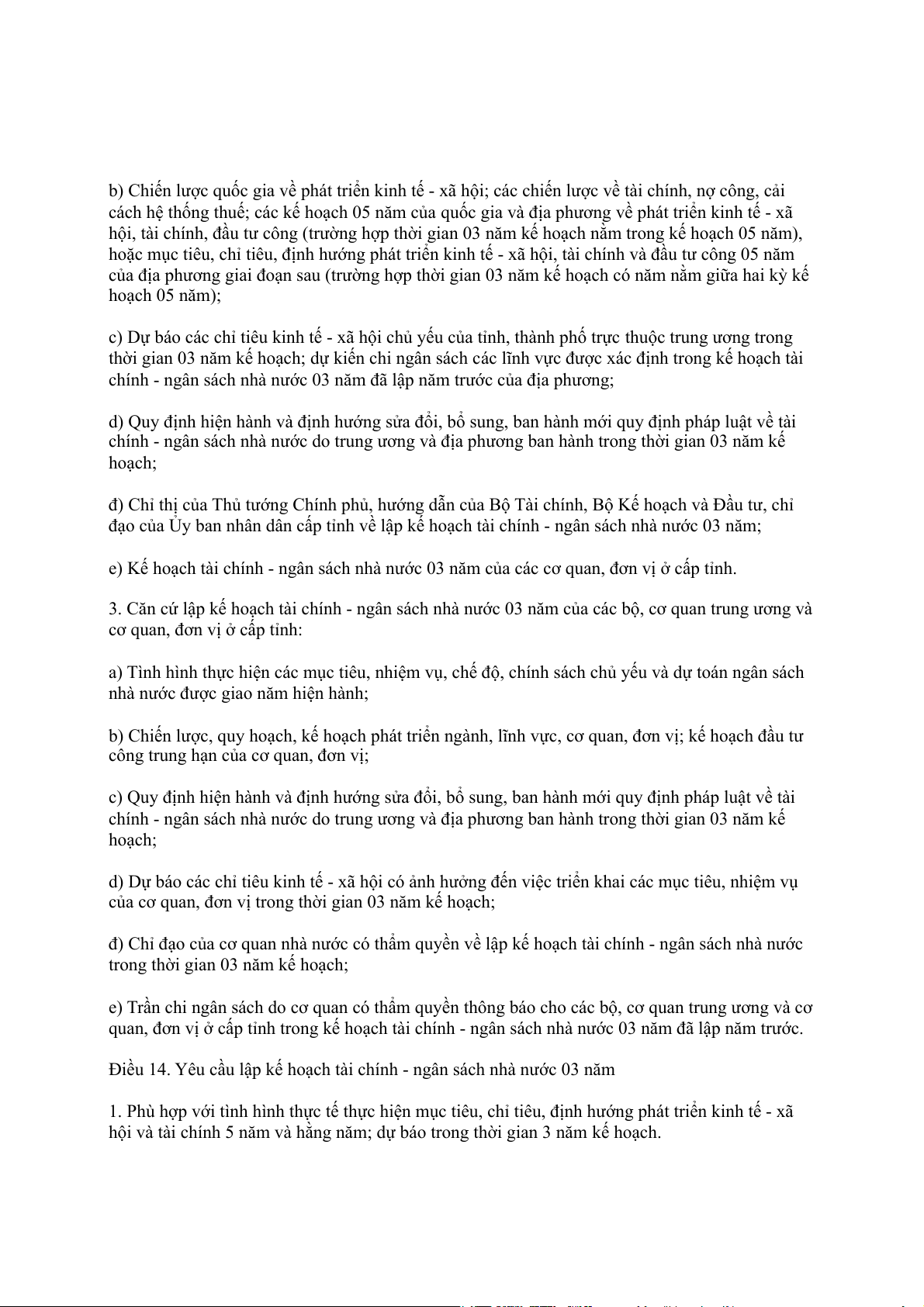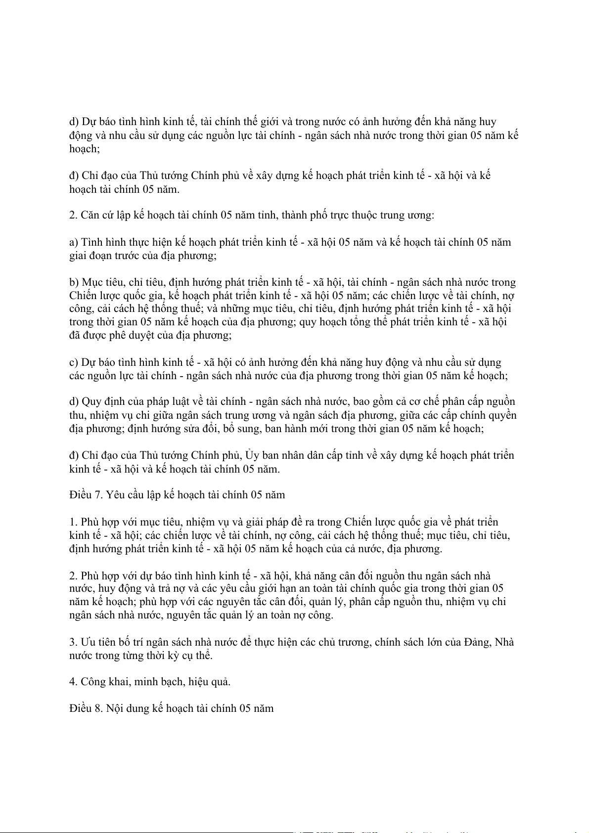 1. Căn cứ lập kế hoạch tài chính 05 năm quốc gia: