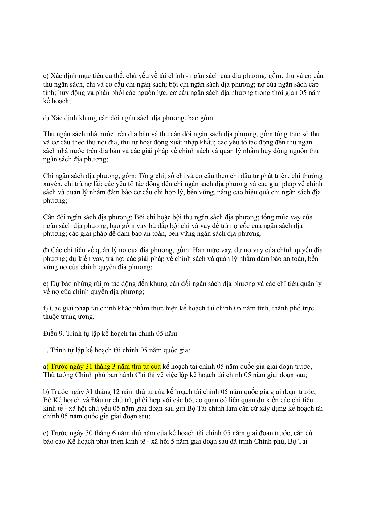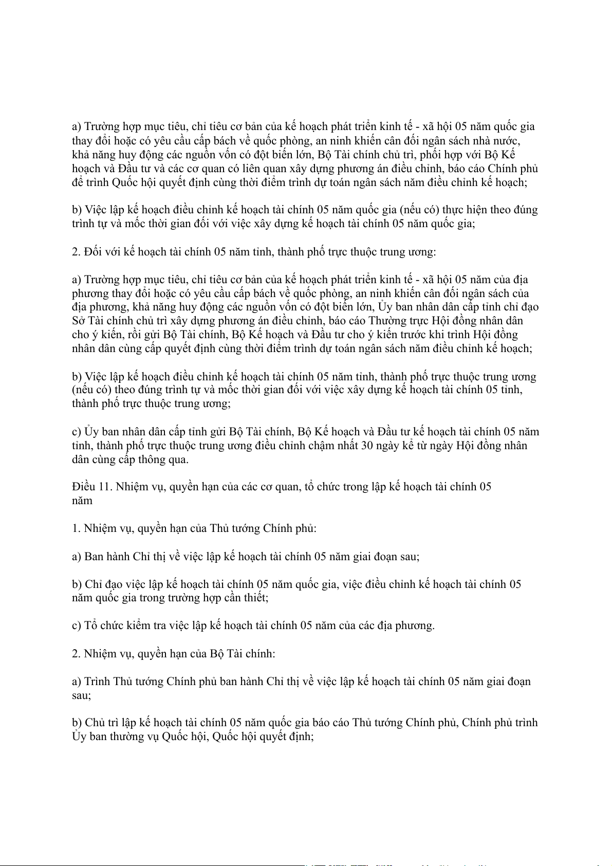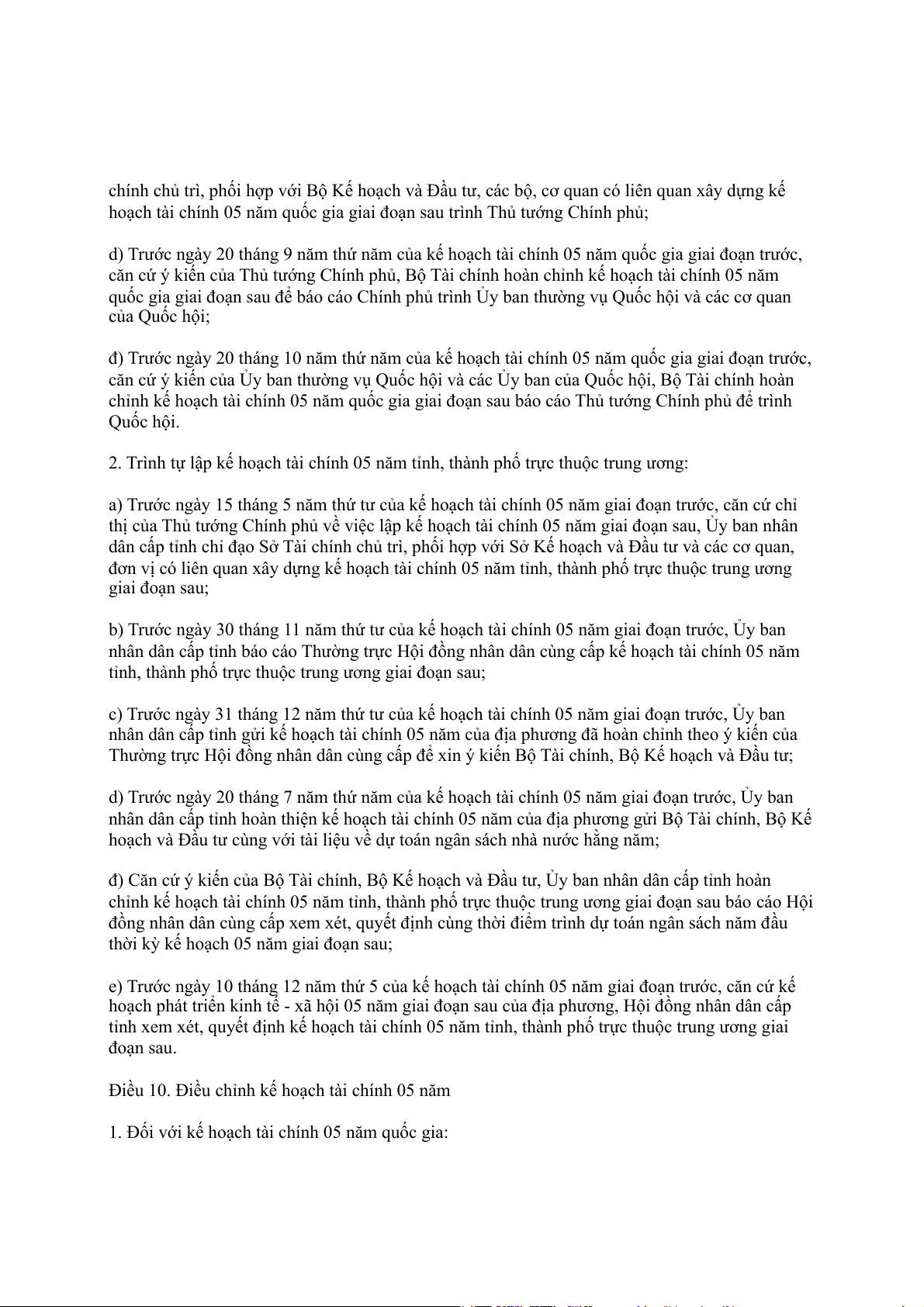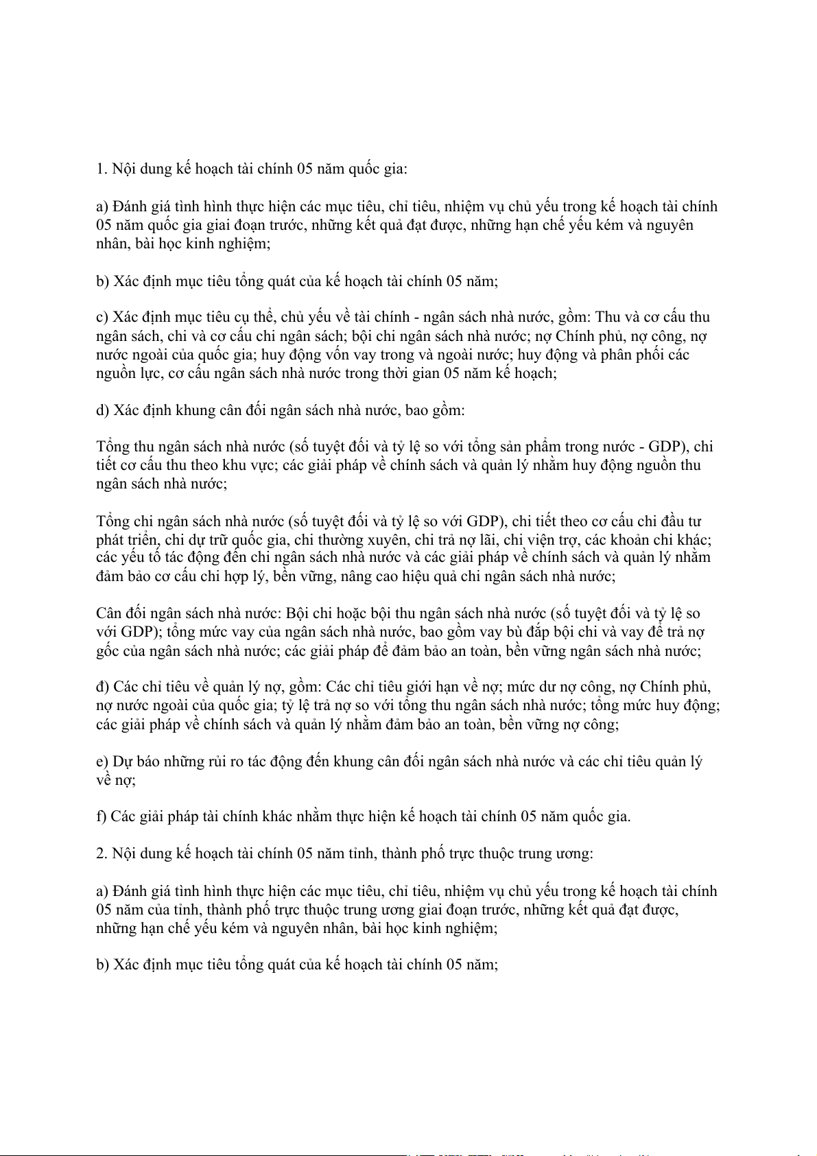 kế hoạch tài chính 05 năm quốc gia và kế hoạch tài chính 05 năm tỉnh, thành phố trực thuộc trung ương.