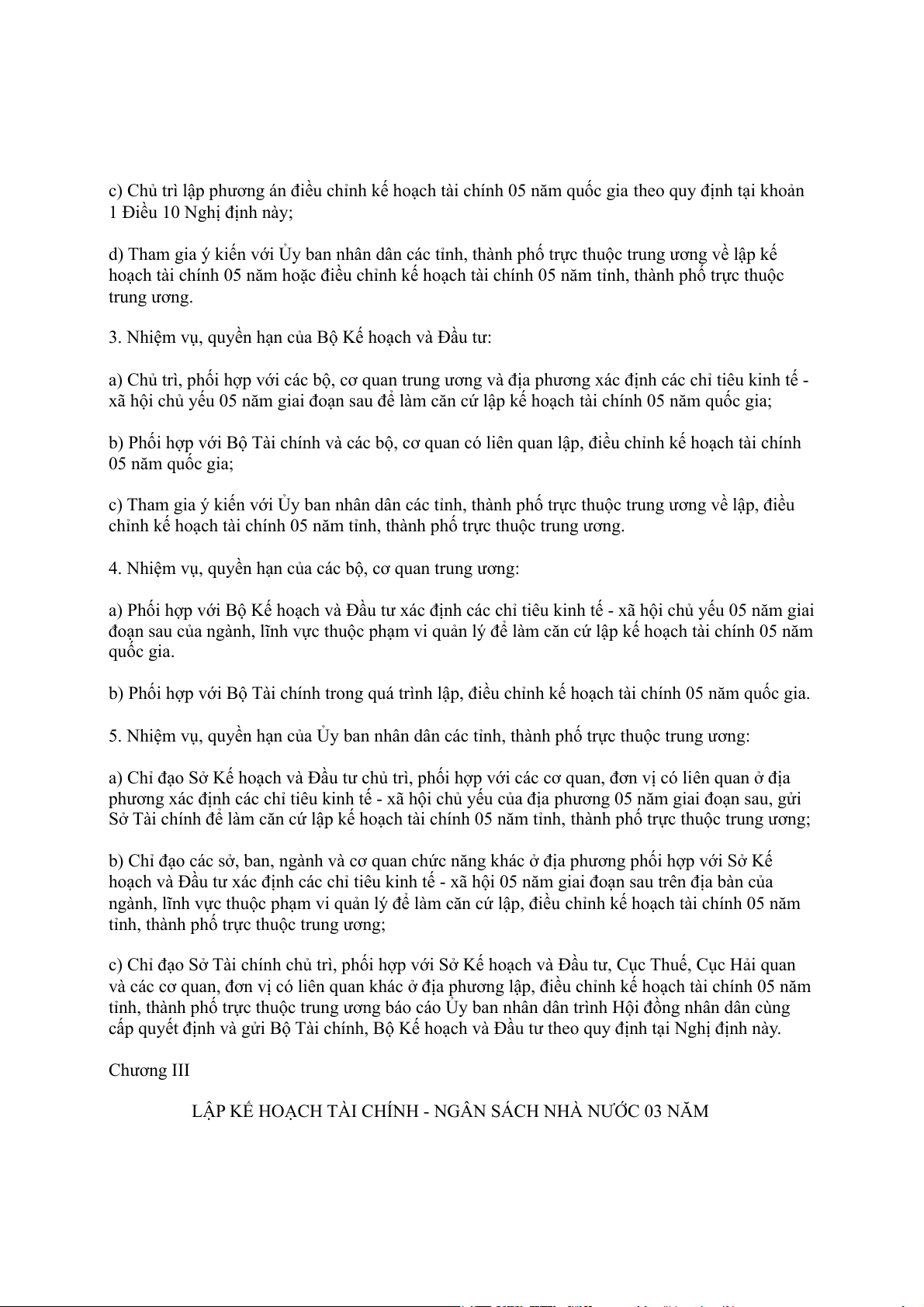 hoạch tài chính 05 năm và lập kế hoạch tài chính - ngân sách nhà nước 03 năm; nhiệm vụ, quyền