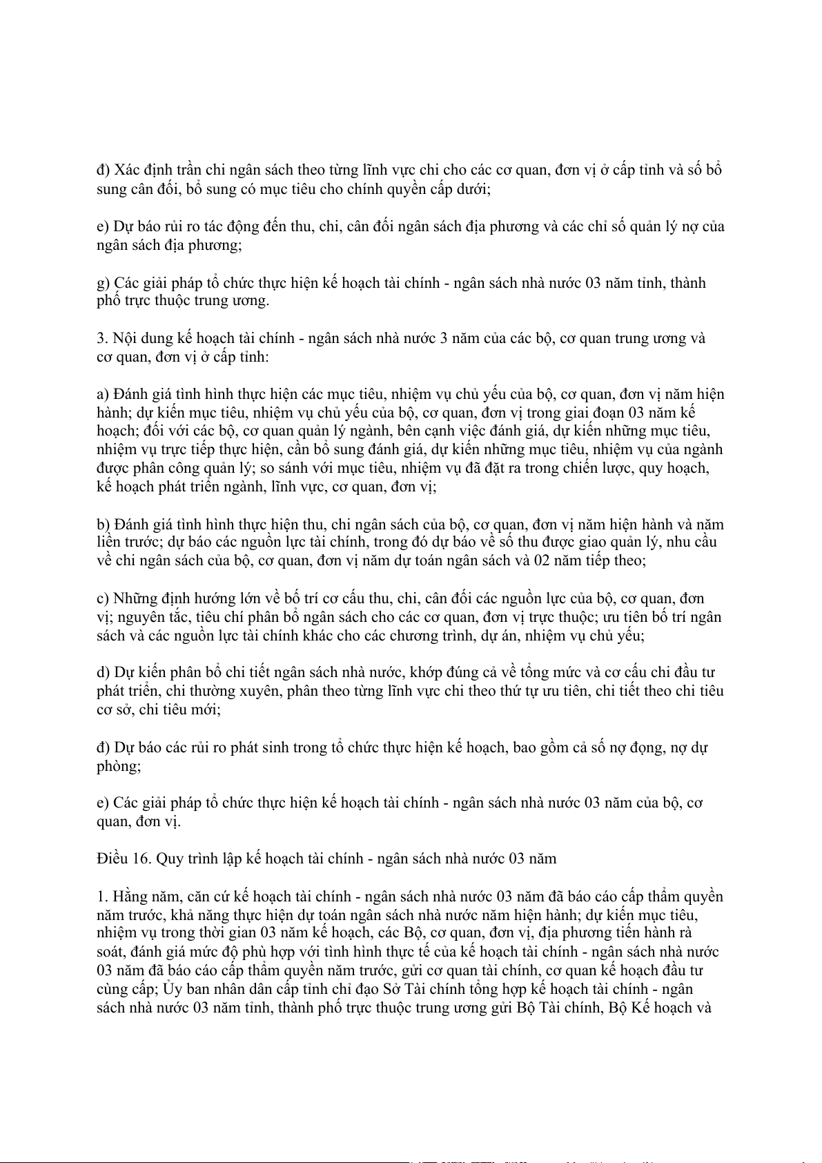 d) Hoàn chỉnh kế hoạch tài chính - ngân sách nhà nước 03 năm tỉnh, thành phố trực thuộc trung
