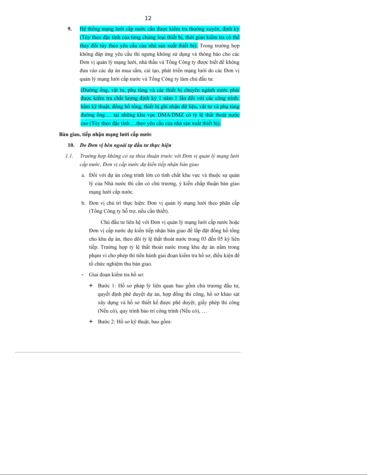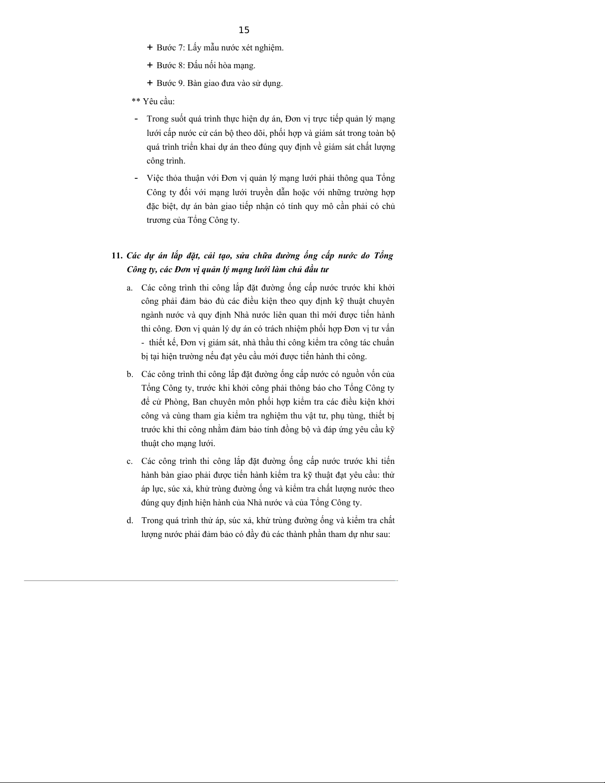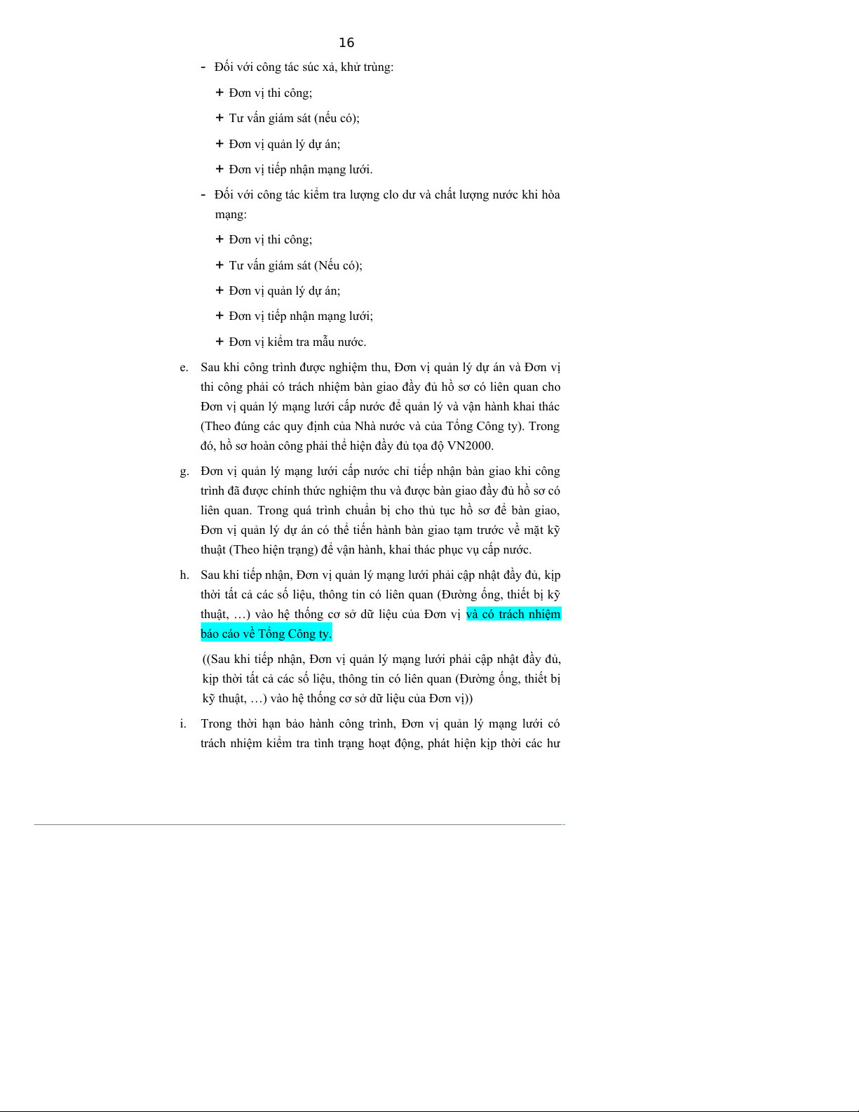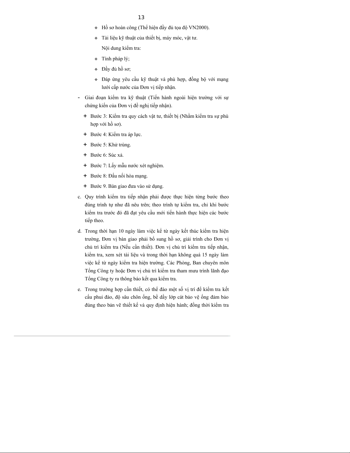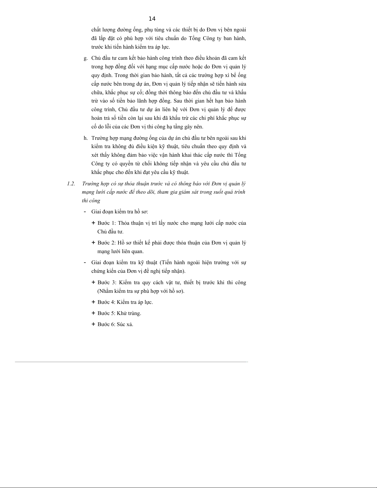 g. Đơn vị quản lý mạng lưới cấp nước chỉ tiếp nhận bàn giao khi công