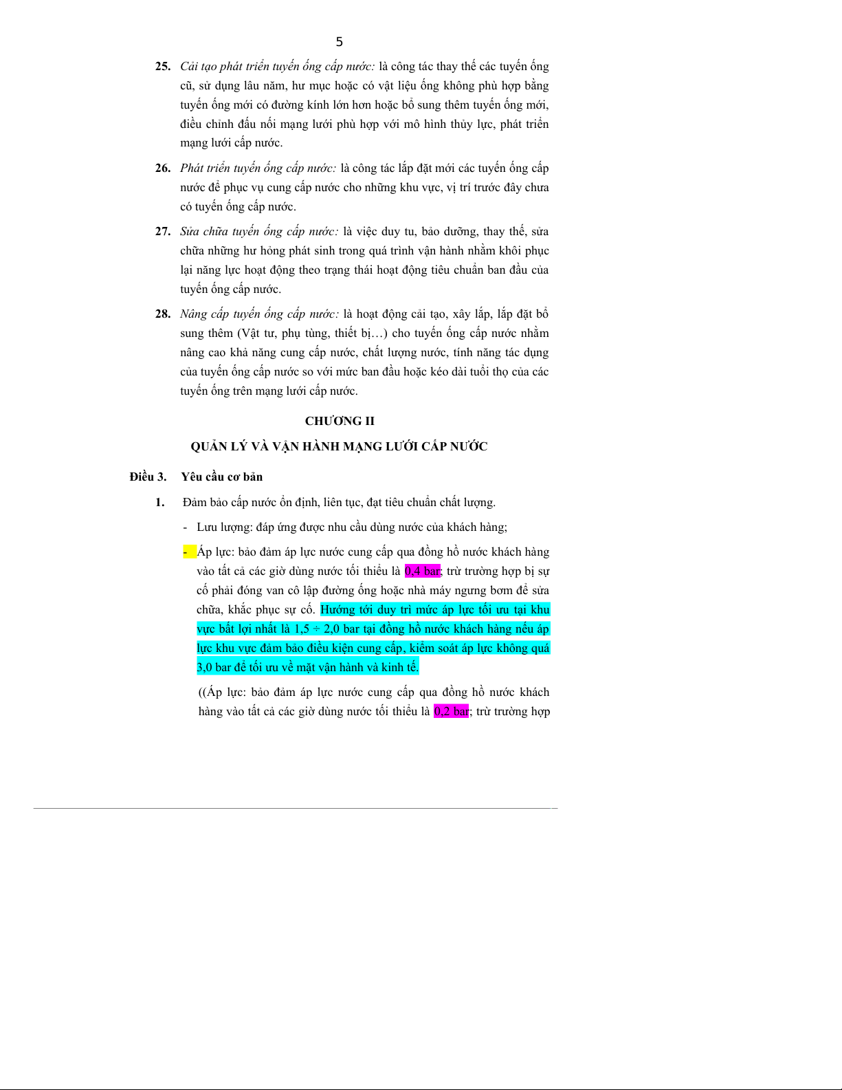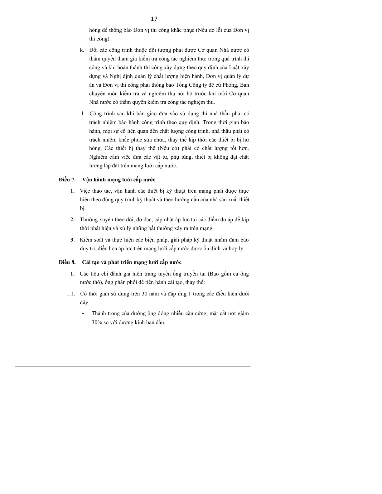 duy trì, điều hòa áp lực trên mạng lưới cấp nước được ổn định và hợp lý. Điều 8.
