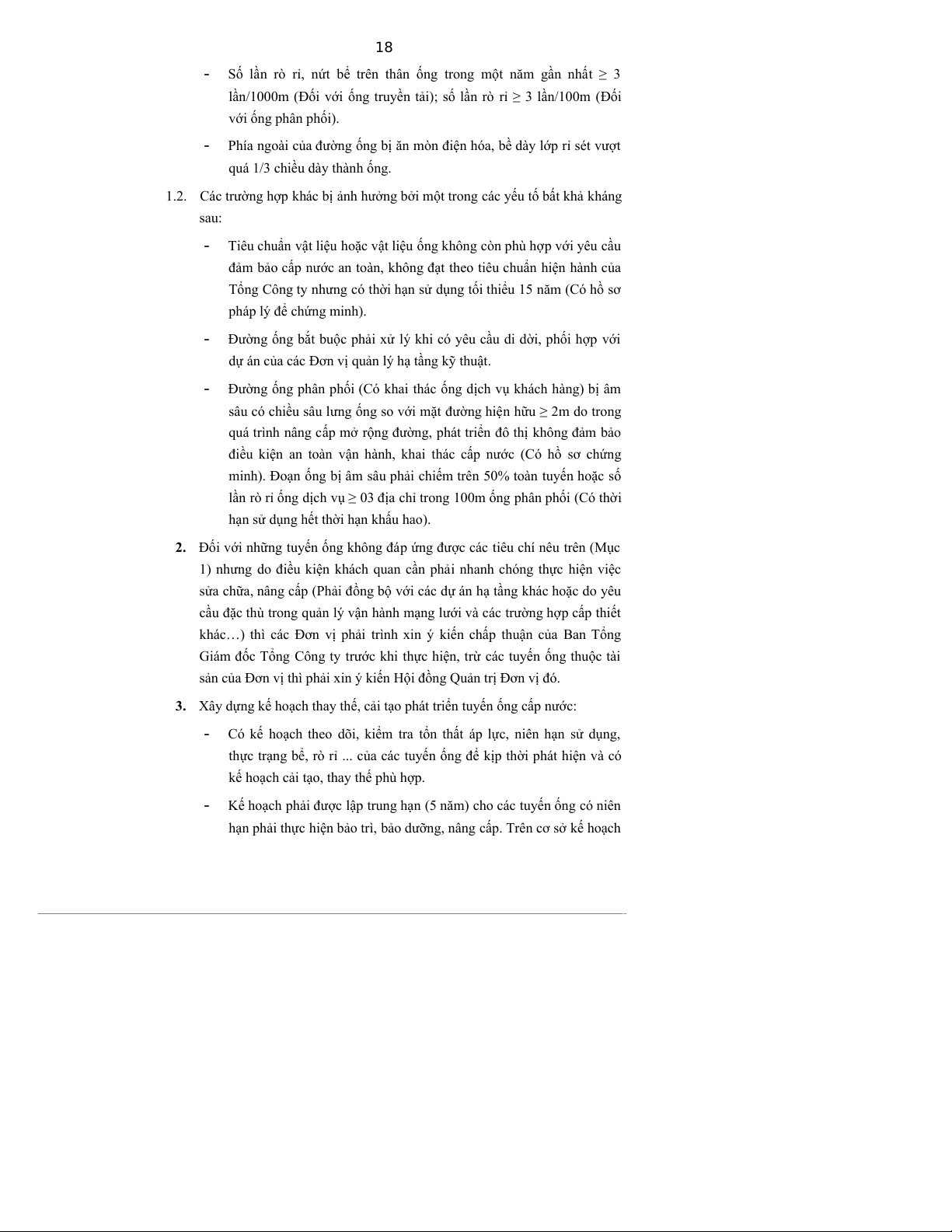 2. Đối với những tuyến ống không đáp ứng được các tiêu chí nêu trên (Mục