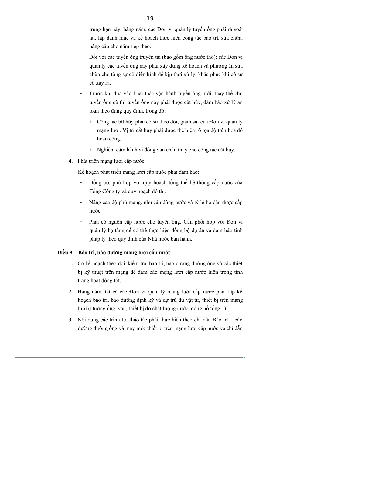 Điều 9. Bảo trì, bảo dưỡng mạng lưới cấp nước