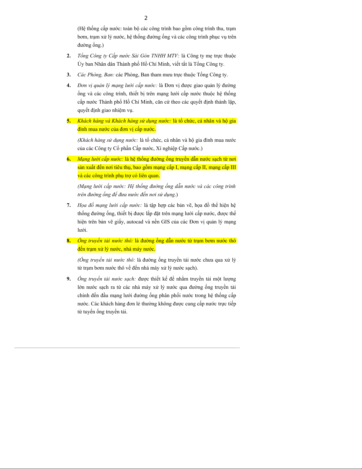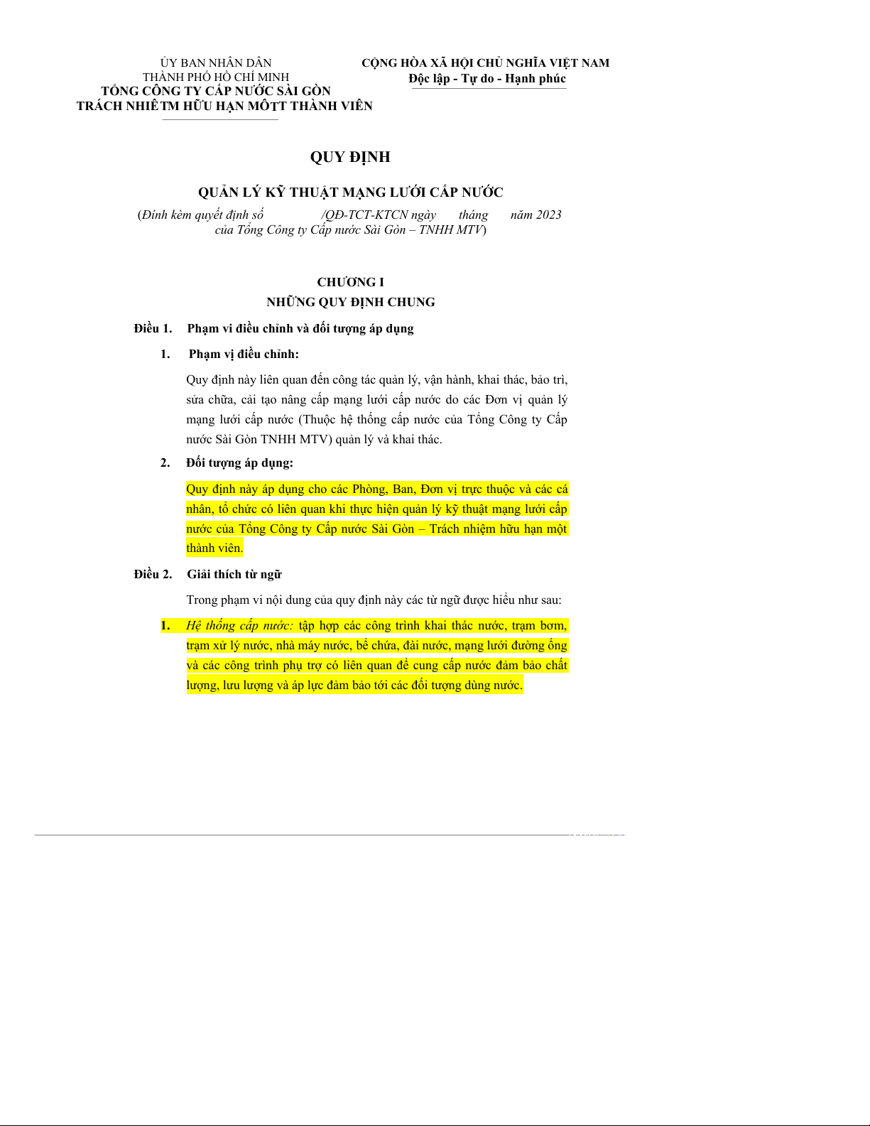 nước của Tổng Công ty Cấp nước Sài Gòn – Trách nhiệm hữu hạn một thành viên. Điều 2.