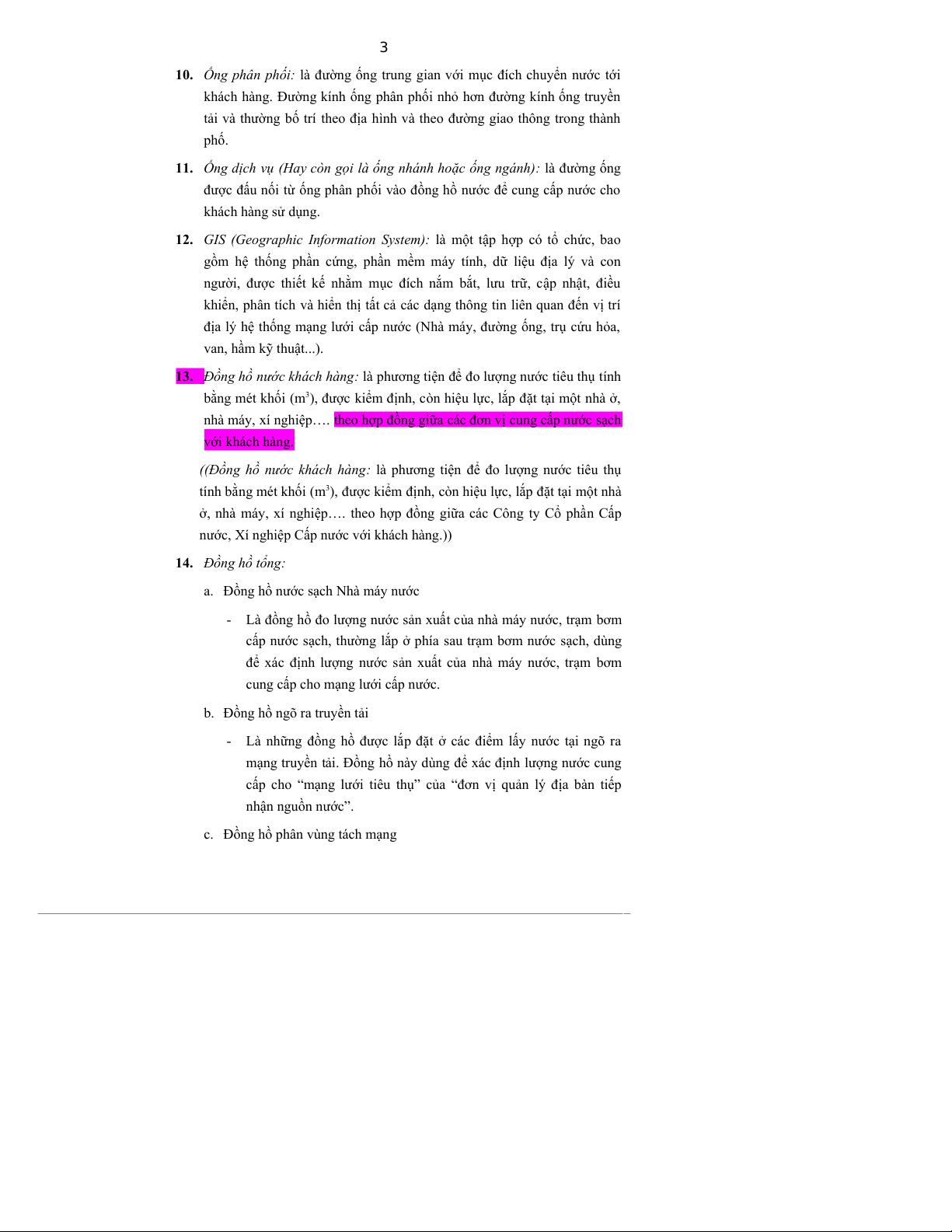 13. Đồng hồ nước khách hàng: là phương tiện để đo lượng nước tiêu thụ tính
