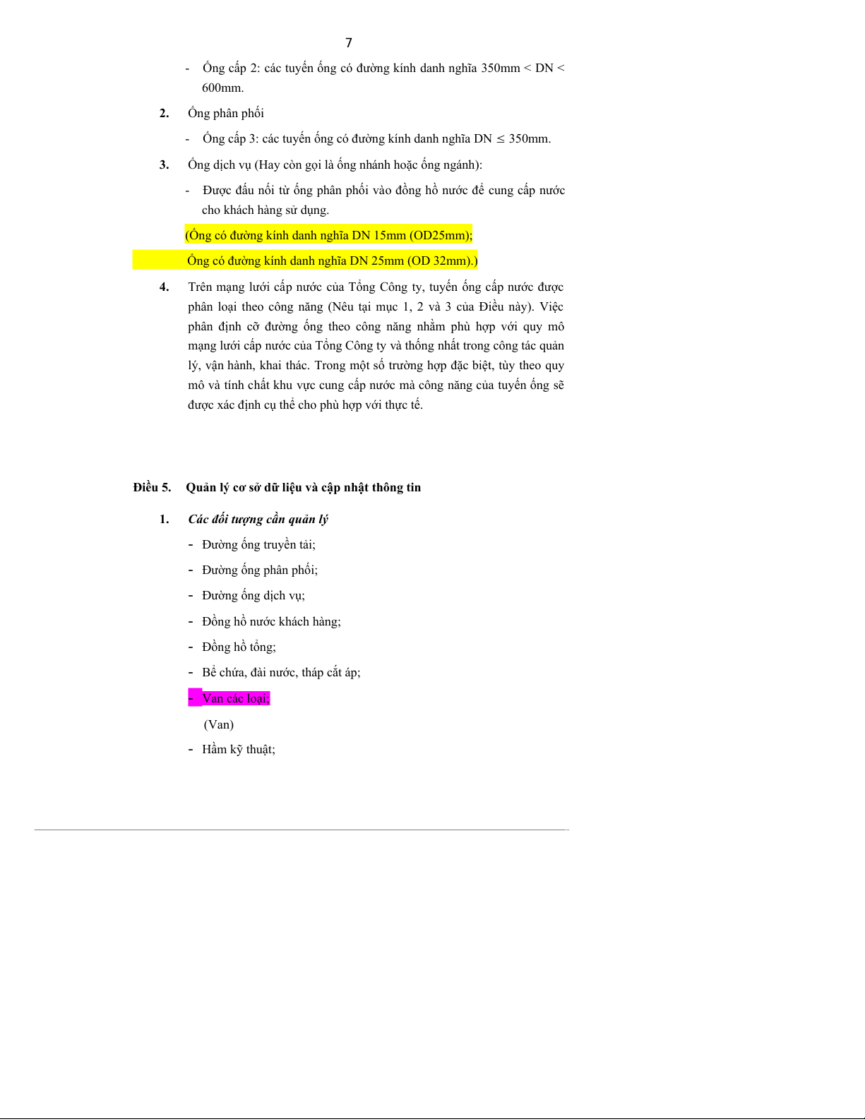 của các Công ty Cổ phần Cấp nước, Xí nghiệp Cấp nước.) 6.