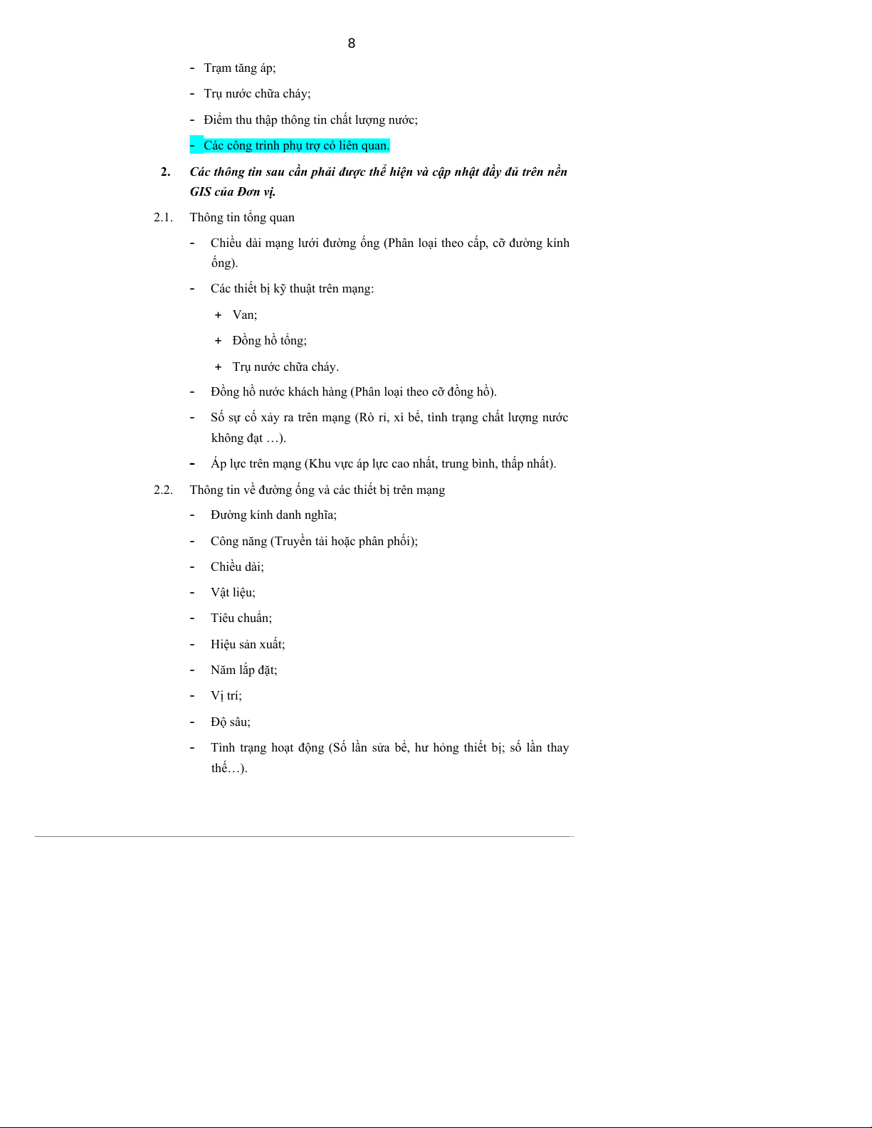 bơm, trạm xử lý nước, hệ thống đường ống và các công trình phục vụ trên đường ống.) 2.