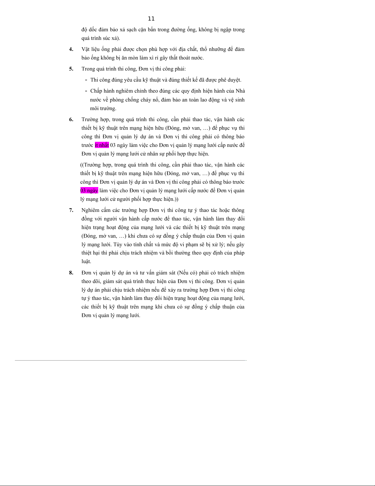 tuyến ống cũ thì tuyến ống này phải được cắt hủy, đảm bảo xử lý an