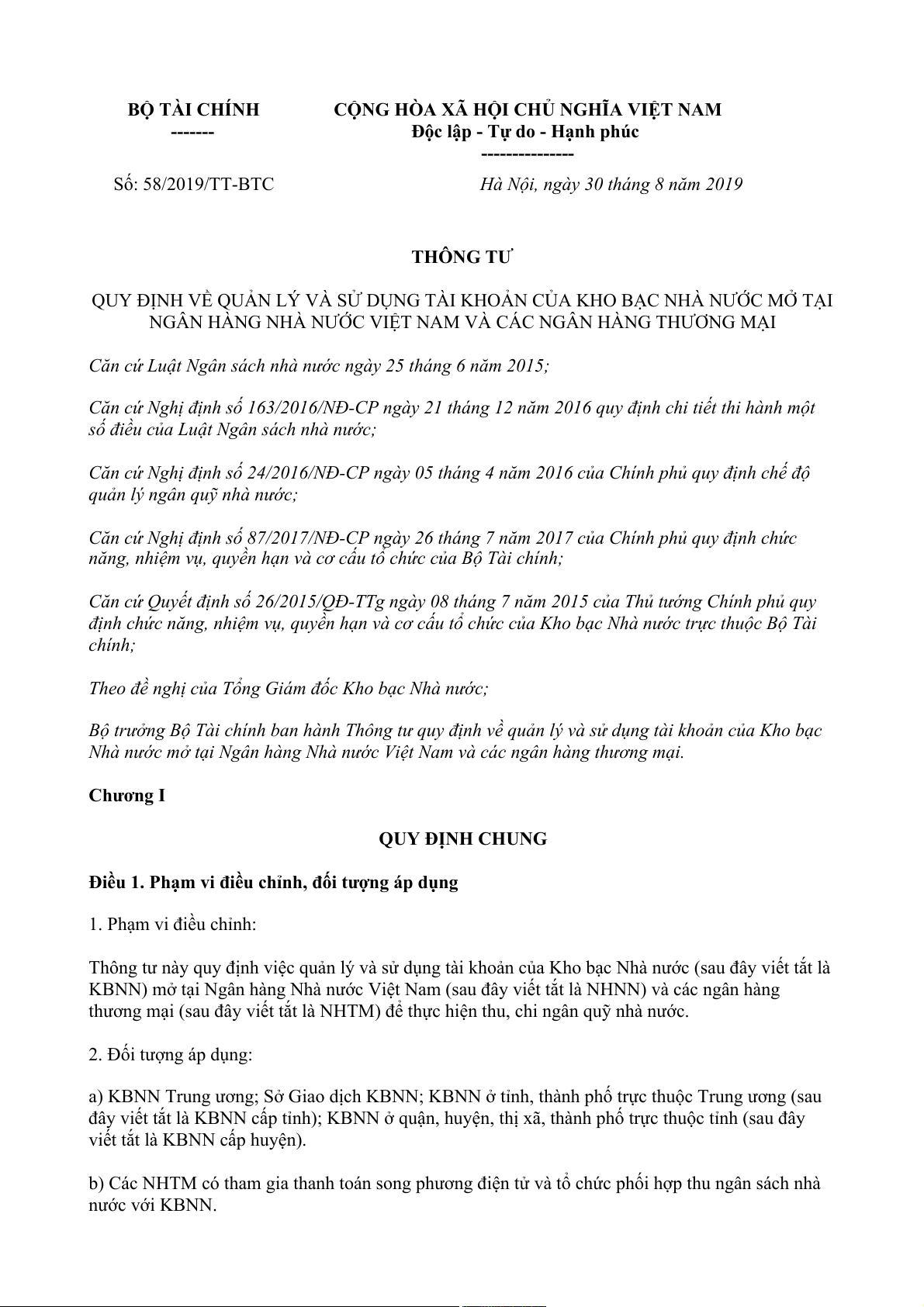 Độc lập - Tự do - Hạnh phúc --------------- Số: 58/2019/TT-BTC