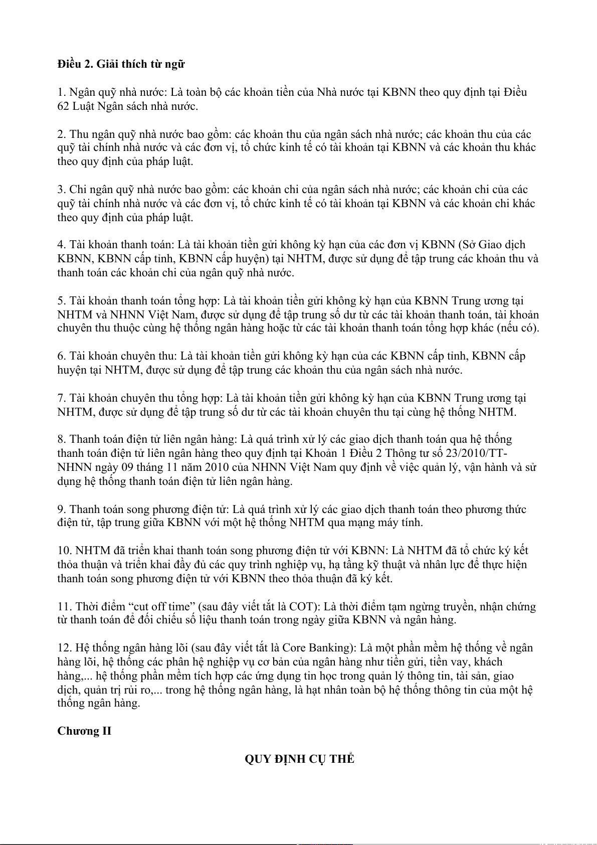quy định của NHNN Việt Nam và NHTM nơi KBNN mở tài khoản; đồng thời, báo cáo cho KBNN Trung ương được biết.