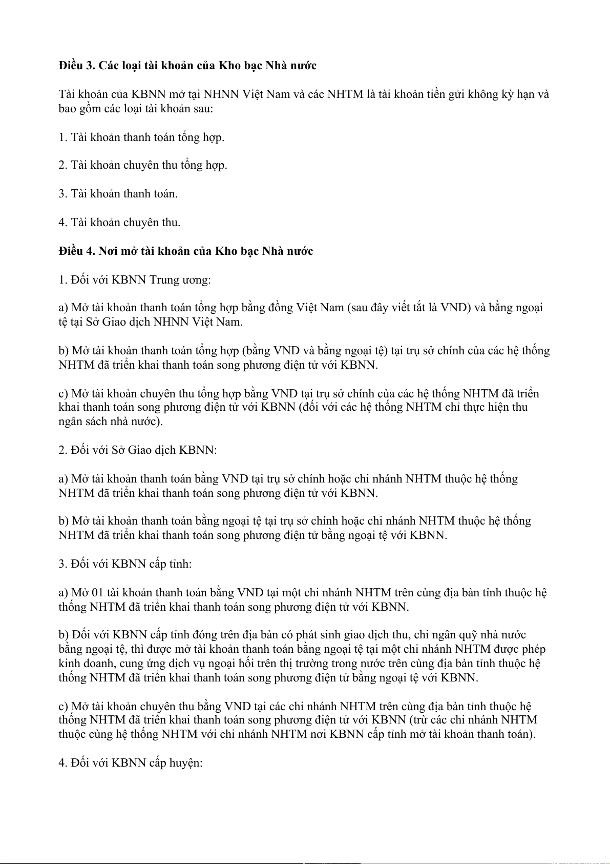 Điều 4. Nơi mở tài khoản của Kho bạc Nhà nước