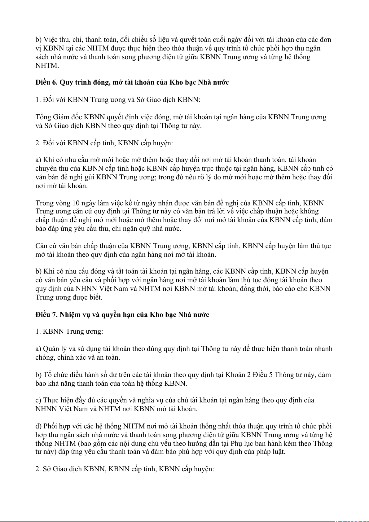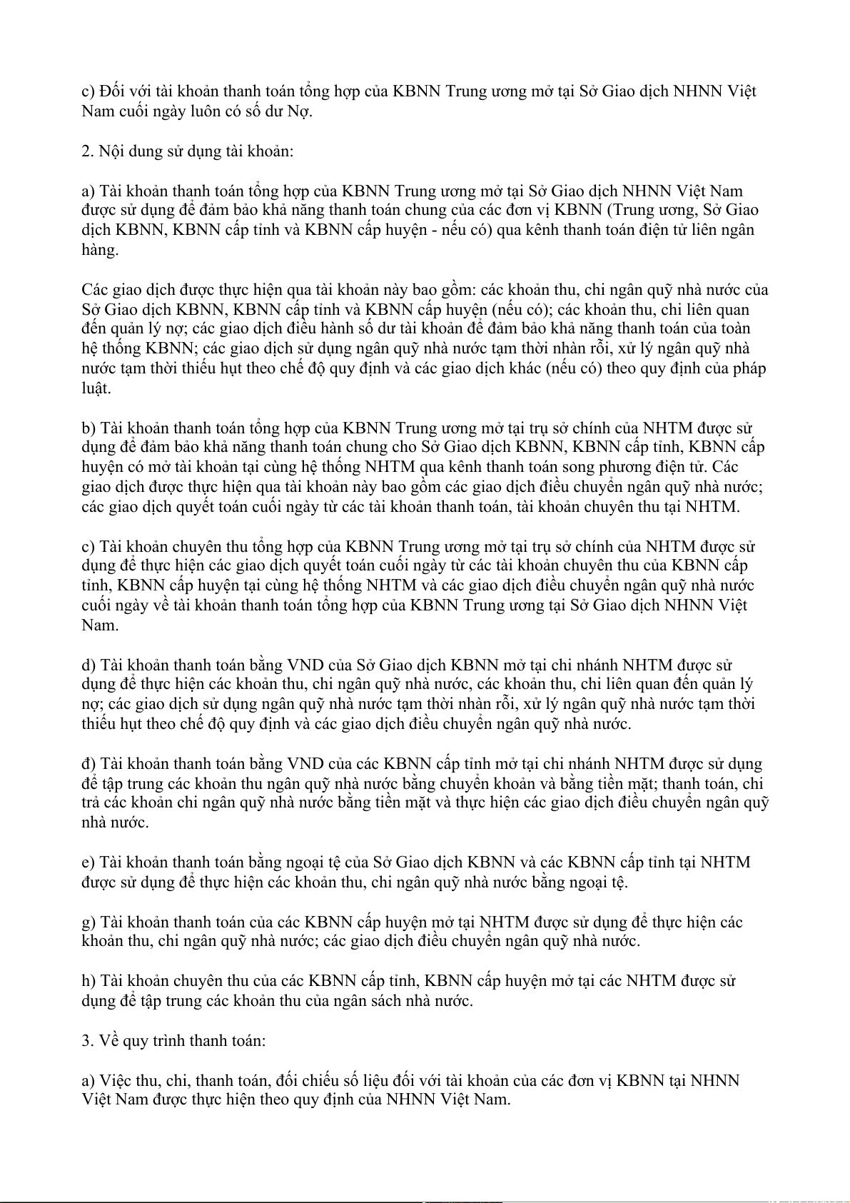 lý và sử dụng tài khoản của KBNN mở tại NHNN Việt Nam và các NHTM; Thông tư số