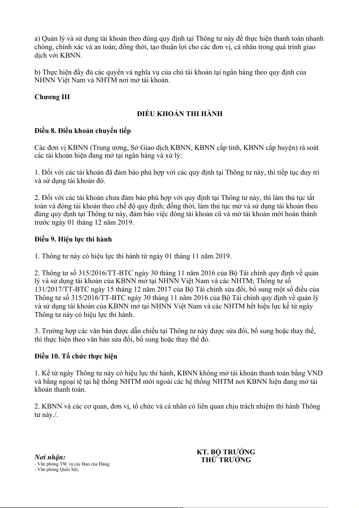 và sử dụng tài khoản của KBNN mở tại NHNN Việt Nam và các NHTM hết hiệu lực kể từ ngày