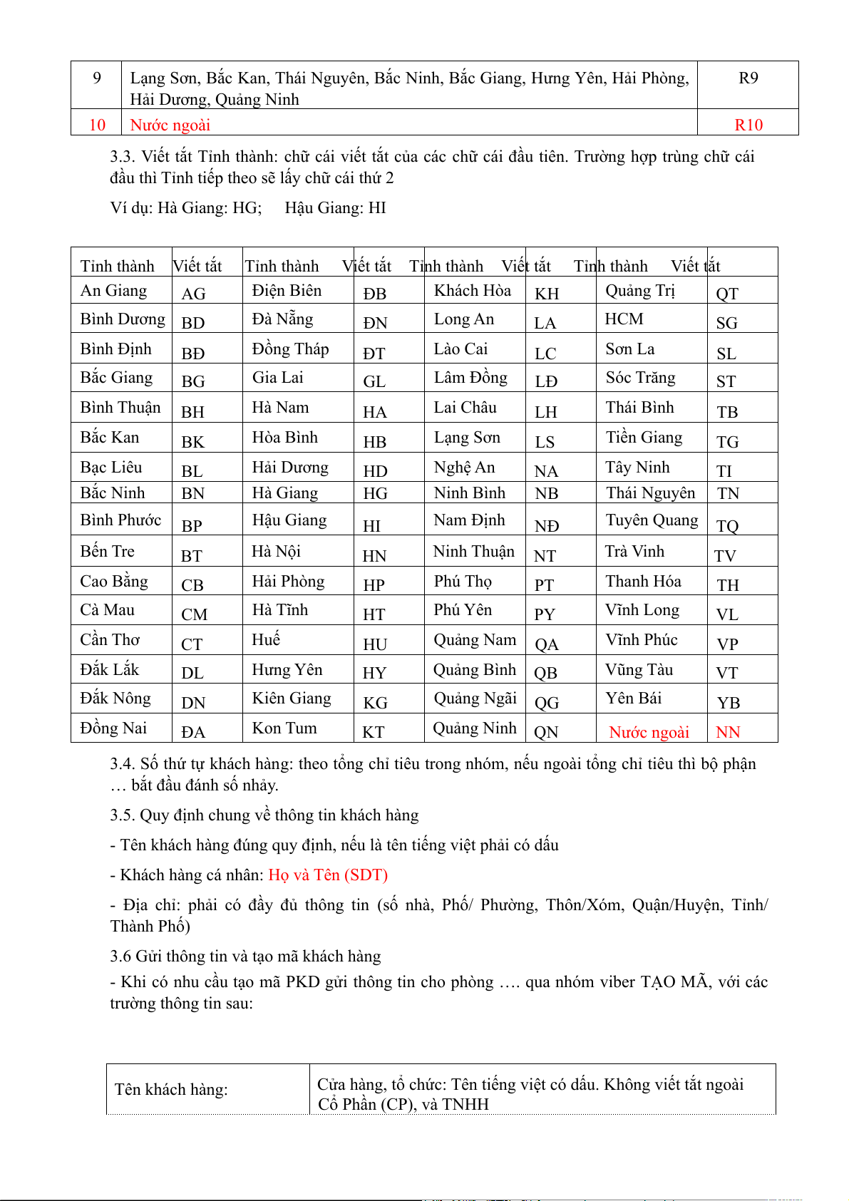3.3. Viết tắt Tỉnh thành: chữ cái viết tắt của các chữ cái đầu tiên. Trường hợp trùng chữ cái
