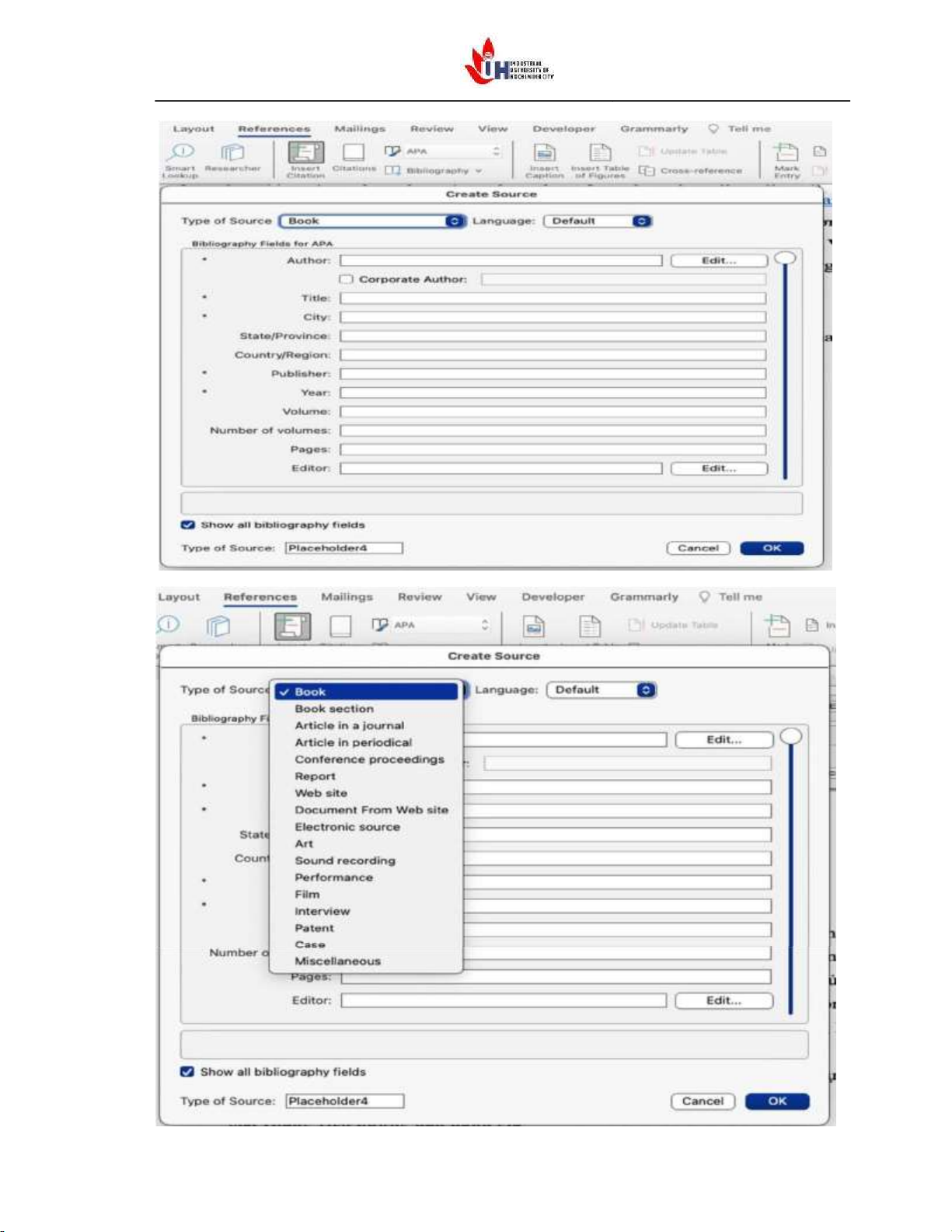 Vào Type of Source ể chọn loại tài liệu trích dẫn thích hợp rồi iền các thông tin liên quan vào