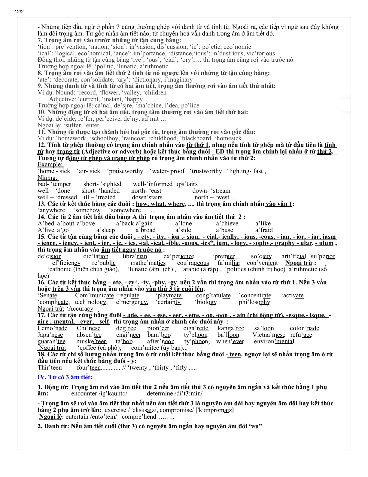 12. Tính từ ghép thuờng có trọng âm chính nhấn vào từ thứ 1, nhng nếu tính từ ghép mà từ đầu tiên là tính