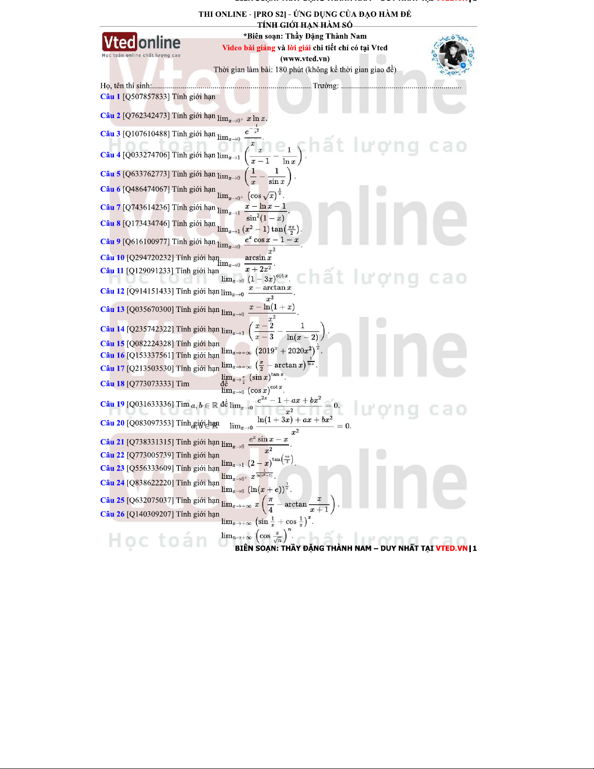 Quy tắc L'Hôpital - Tài liệu Tính Giới Hạn [MATH501]