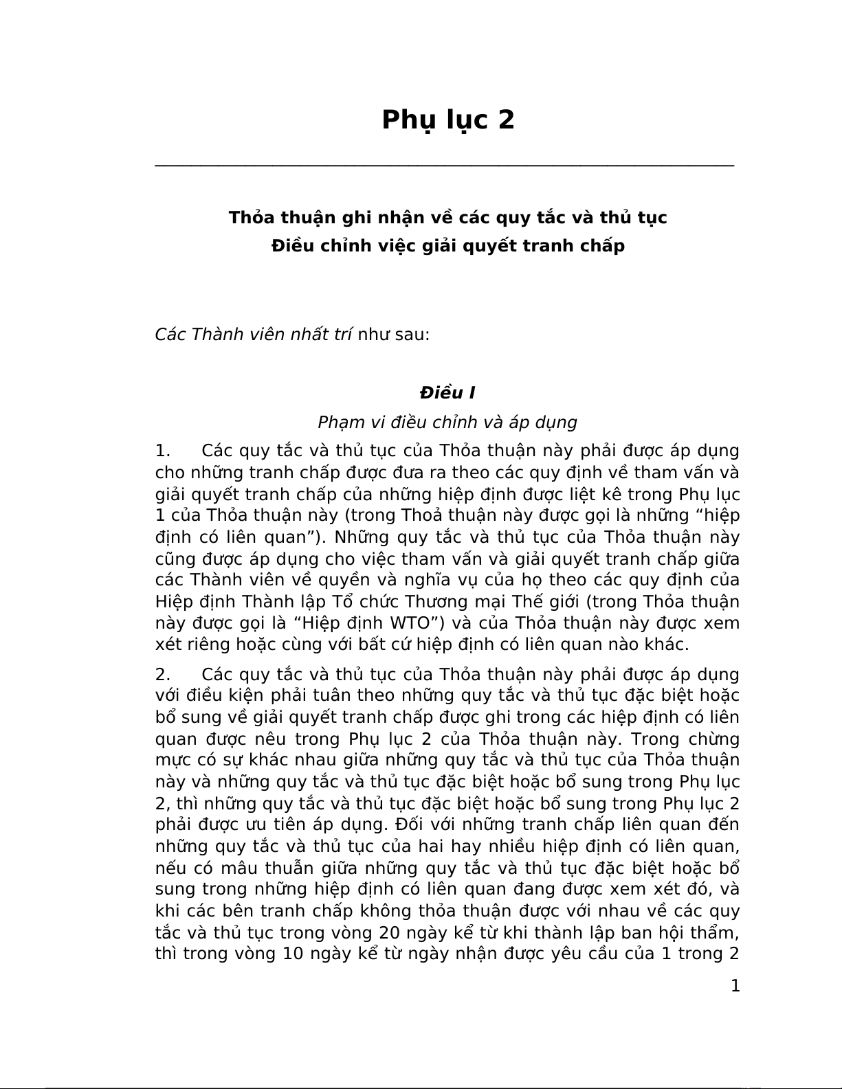 Các Thành viên nhất trí như sau: Điều I
