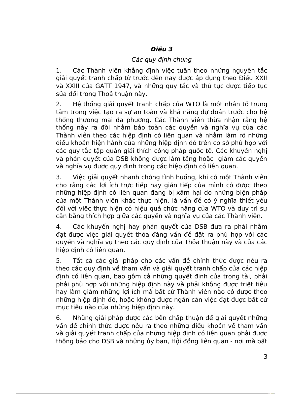và nghĩa vụ được quy định trong các hiệp định có liên quan. 3.