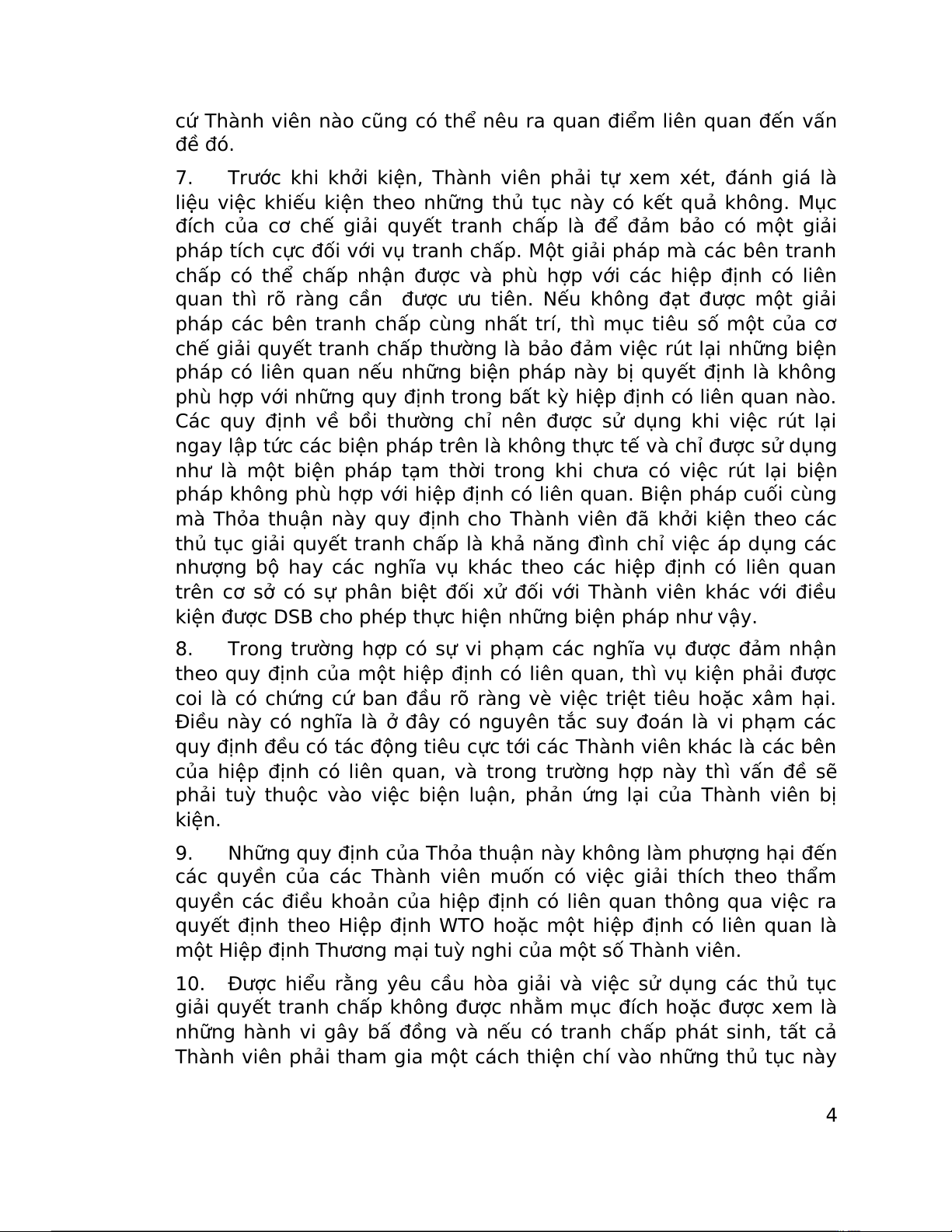 các Thành viên về quyền và nghĩa vụ của họ theo các quy định của
