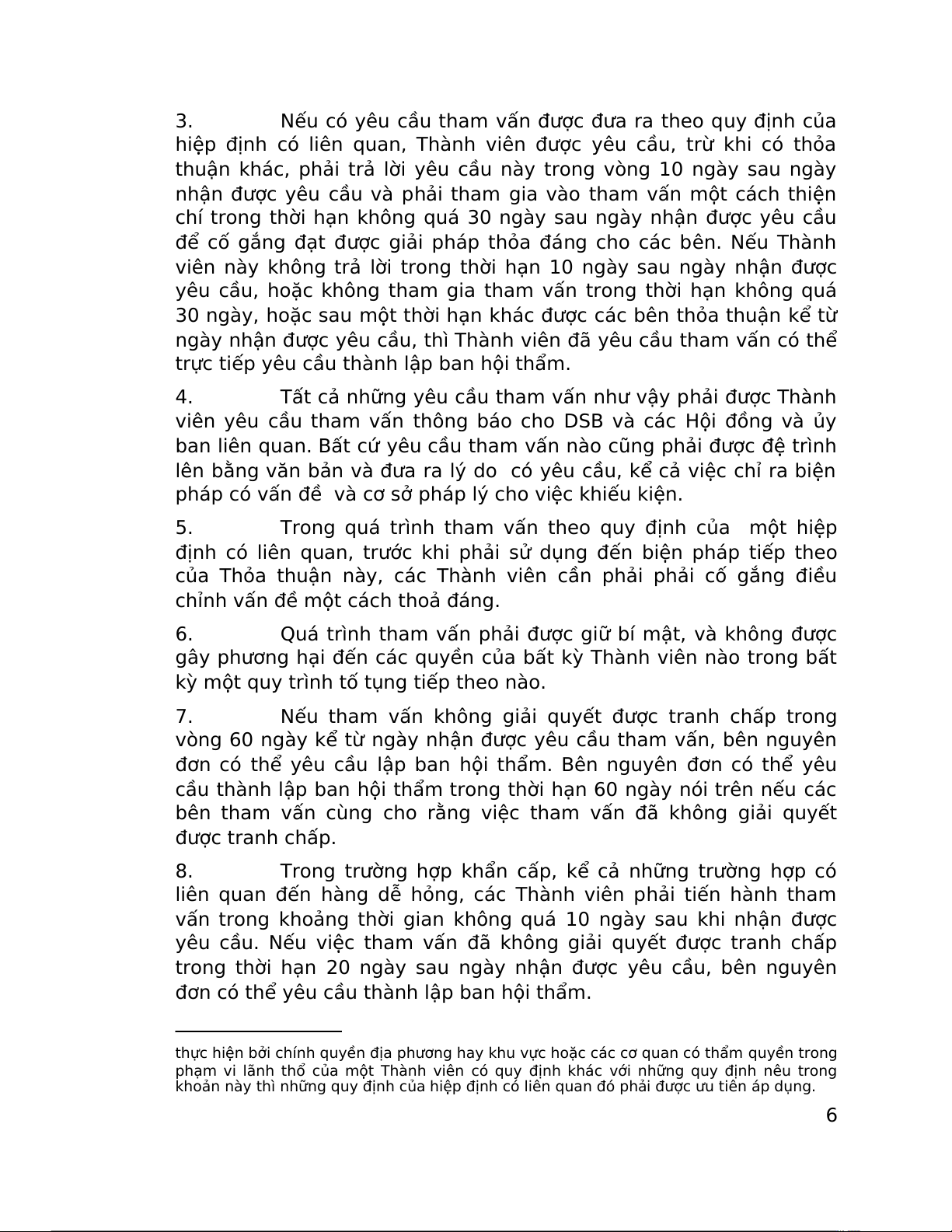 theo các quy định về tham vấn và giải quyết tranh chấp của các hiệp