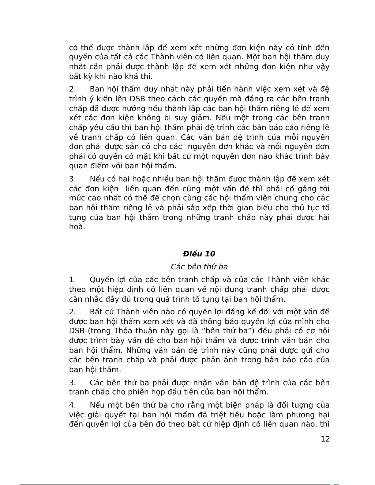 tụng của ban hội thẩm trong những tranh chấp này phải được hài hoà. Điều 10 Các bên thứ ba 1.