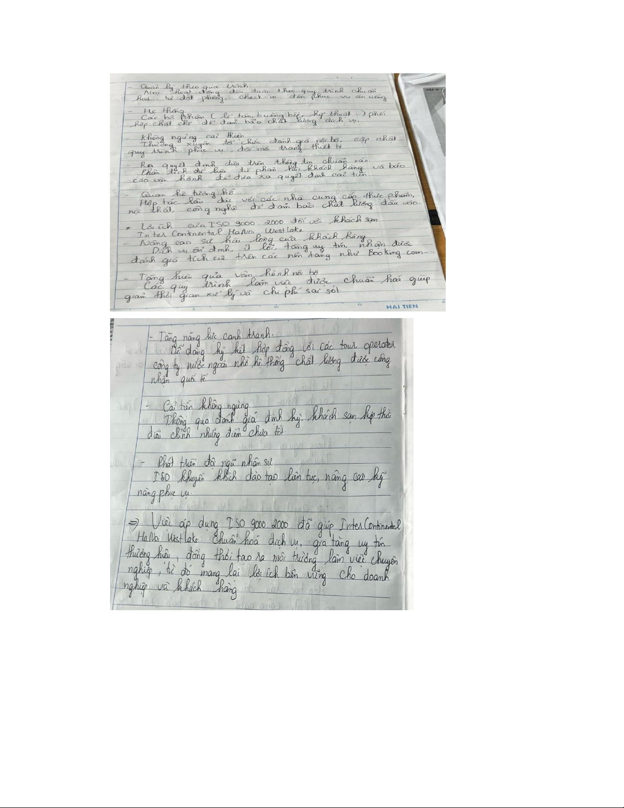Ý nghĩa: Khách sạn không ngừng đánh giá lại quy trình hoạt động, sáng tạo ra