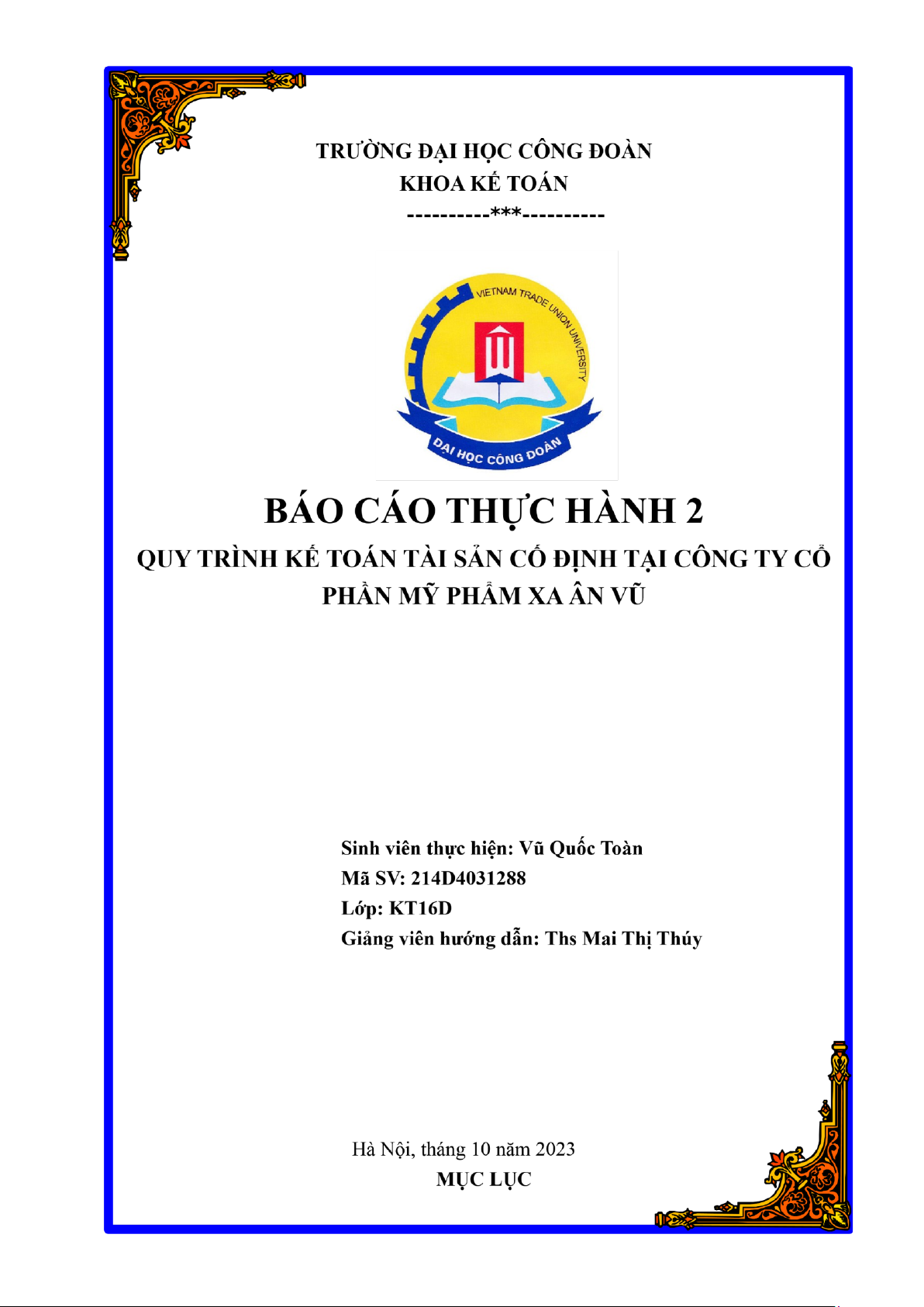 Phần II: Mô tả quy trình kế toán tài sản cố định tại công ty cổ phần mỹ phẩm Xa Ân Vũ lOMoAR cPSD| 60888405 1