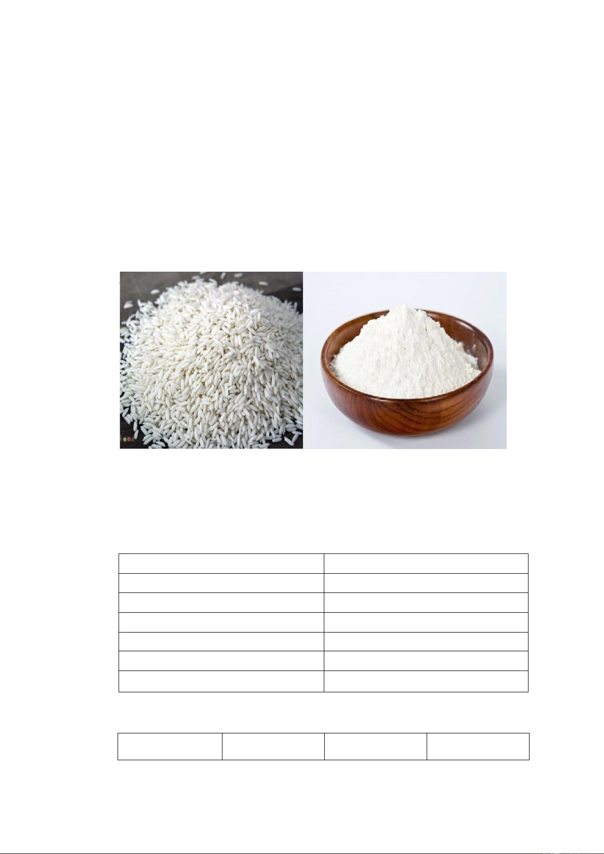 Bảng 2.4. Hàm lượng vitamin và khoáng chất có trong bột gạo nếp Khoáng chất Hàm lượng Vitamin Hàm lượng lOMoAR cPSD| 22014077 12 Ca (mg) 12 mg/100g Fe (mg) 0,8 B1 0,1 Mg (mg) 18 B2 0,02 Mn (mg) 1,14 PP 1,7 P (mg) 148 B5 0,295 K (mg) 293 B6 0,111 Na (mg) 3 B12 0 Zn (mg) 2,29 C 0 Cu (µg) 291 A - Se (µg) 15,7 E -