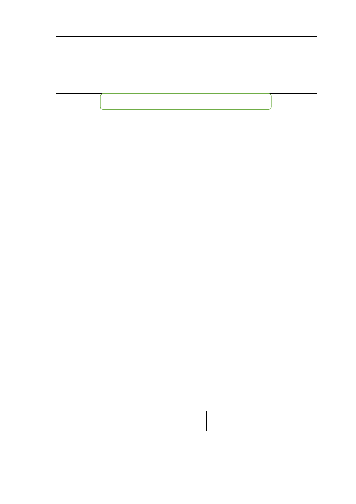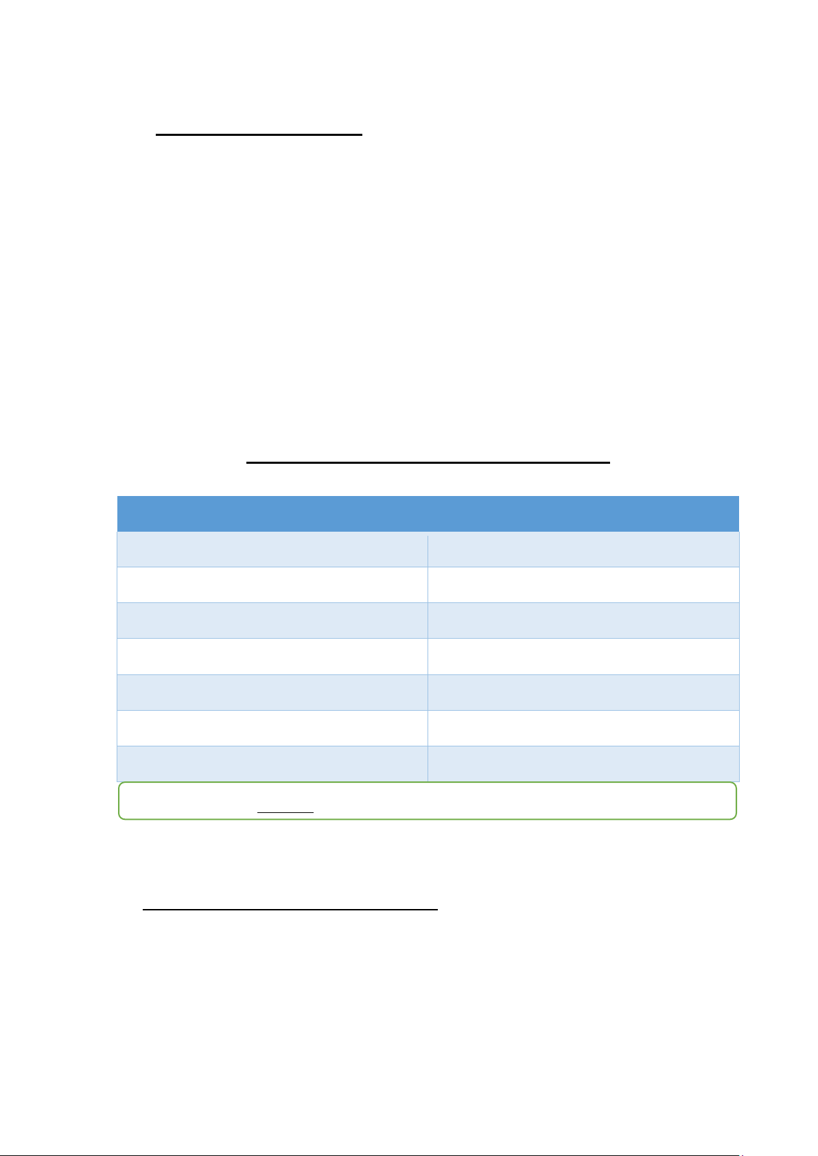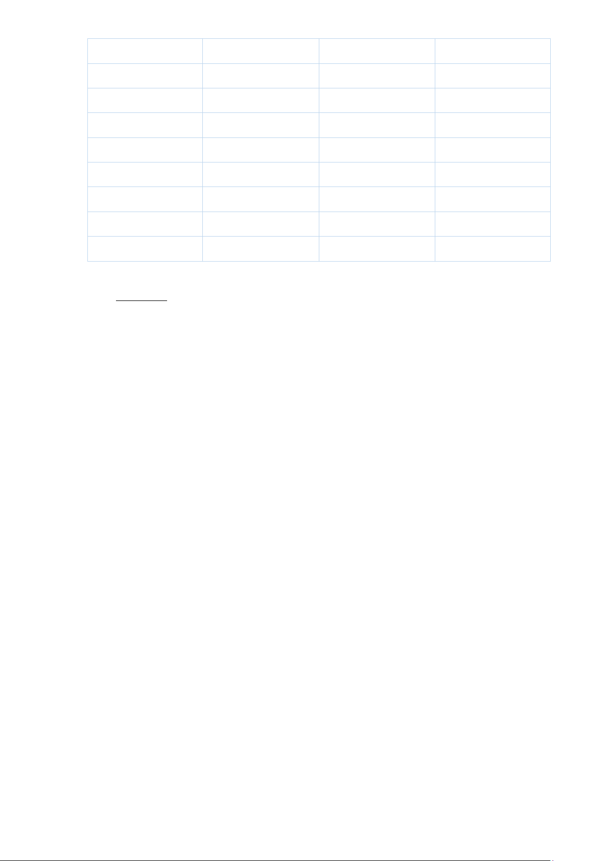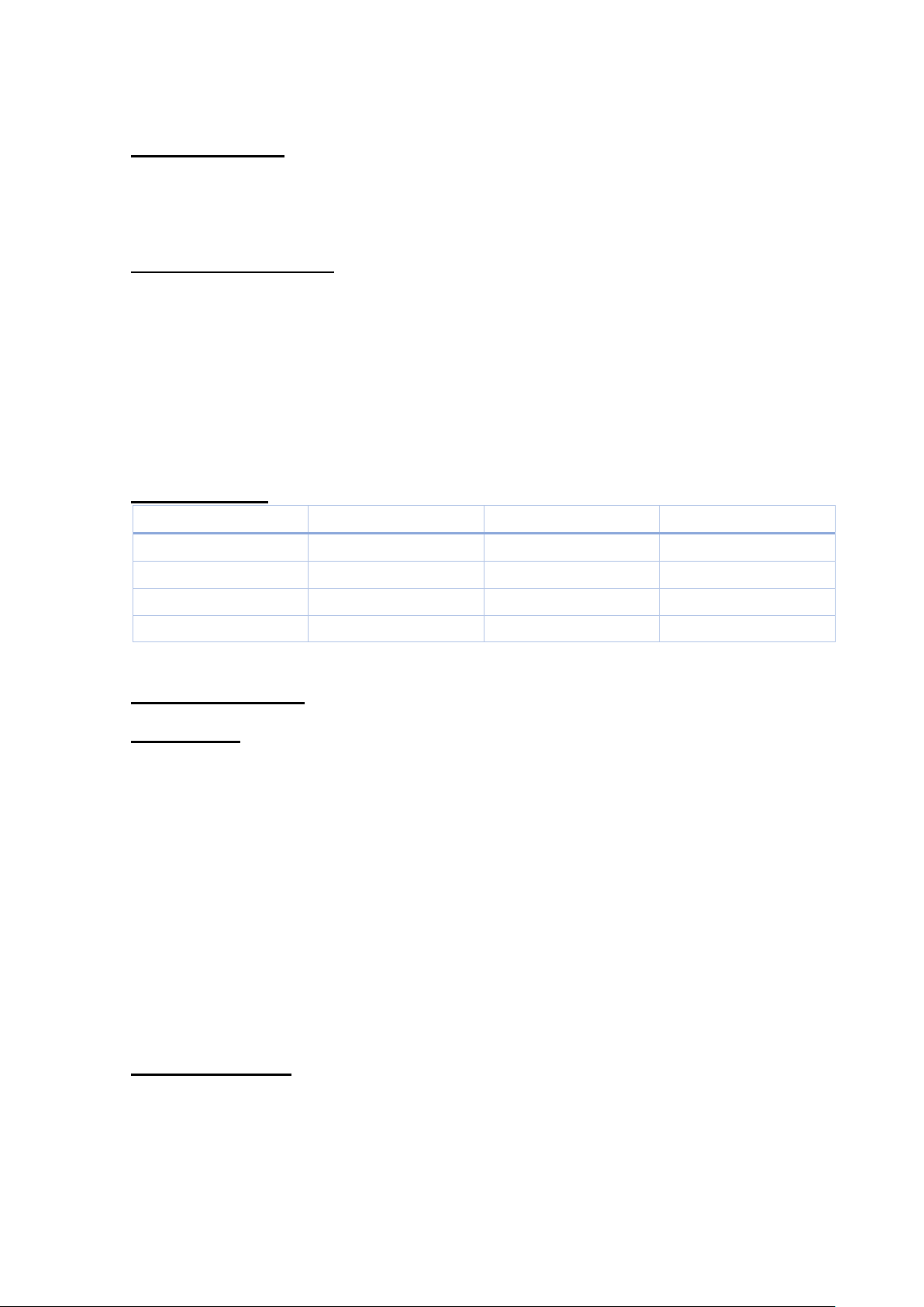 2.1.3 DANH SÁCH CÁC DỤNG CỤ THÍ NGHIỆM: Stt Dụng cụ Số lượng Đơn vị 1 Ống đong 1 Cái 2 Đúa khuấy 1 Cái 3 Becher 1 Cái 4 Ca nhựa 3 Cái 5 Rổ 1 Cái 6 Thau 1 Cái 10 lOMoAR cPSD| 45734214 7 Muỗng Cái 8 Lọ đựng Cái 9 Nhiệt kế Cái 10 Pipet 10ml Cái 11 Pipet nhỏ giọt Cái 12 Bóp cao su Cái 13 Bình định mức Cái 14 Buret 25ml Cái 15 Erlen 250ml Cái Hóa chất: - Natri Hyposulfit - Chloroform