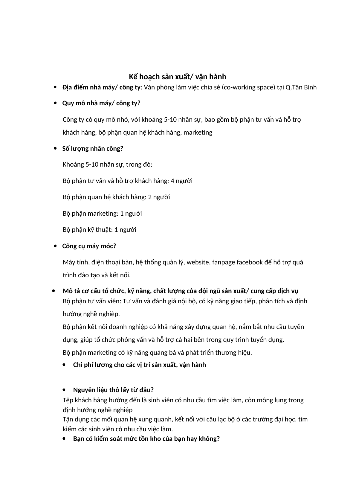 Kế hoạch sản xuất/ vận hành