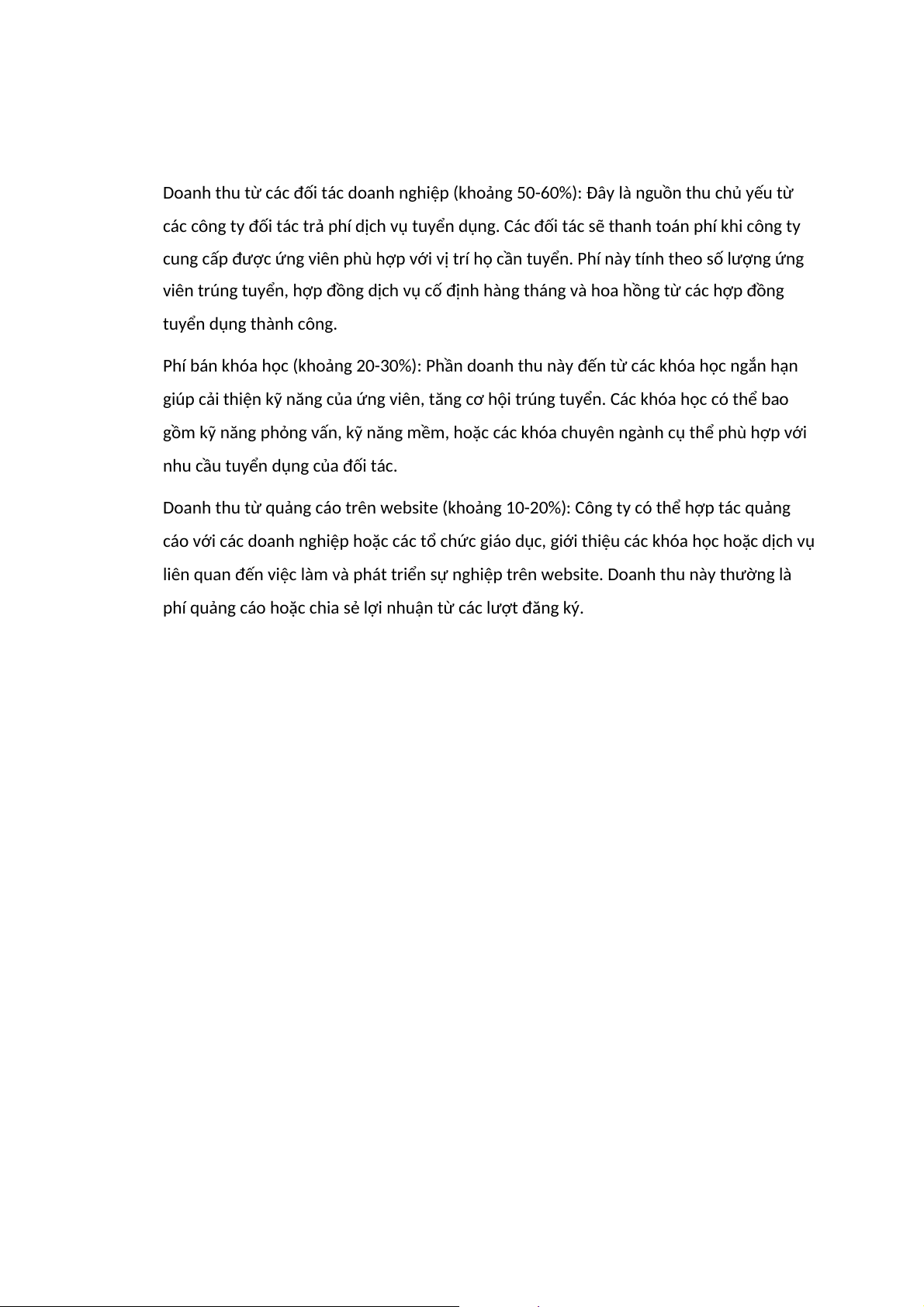 Doanh thu từ quảng cáo trên website (khoảng 10-20%): Công ty có thể hợp tác quảng