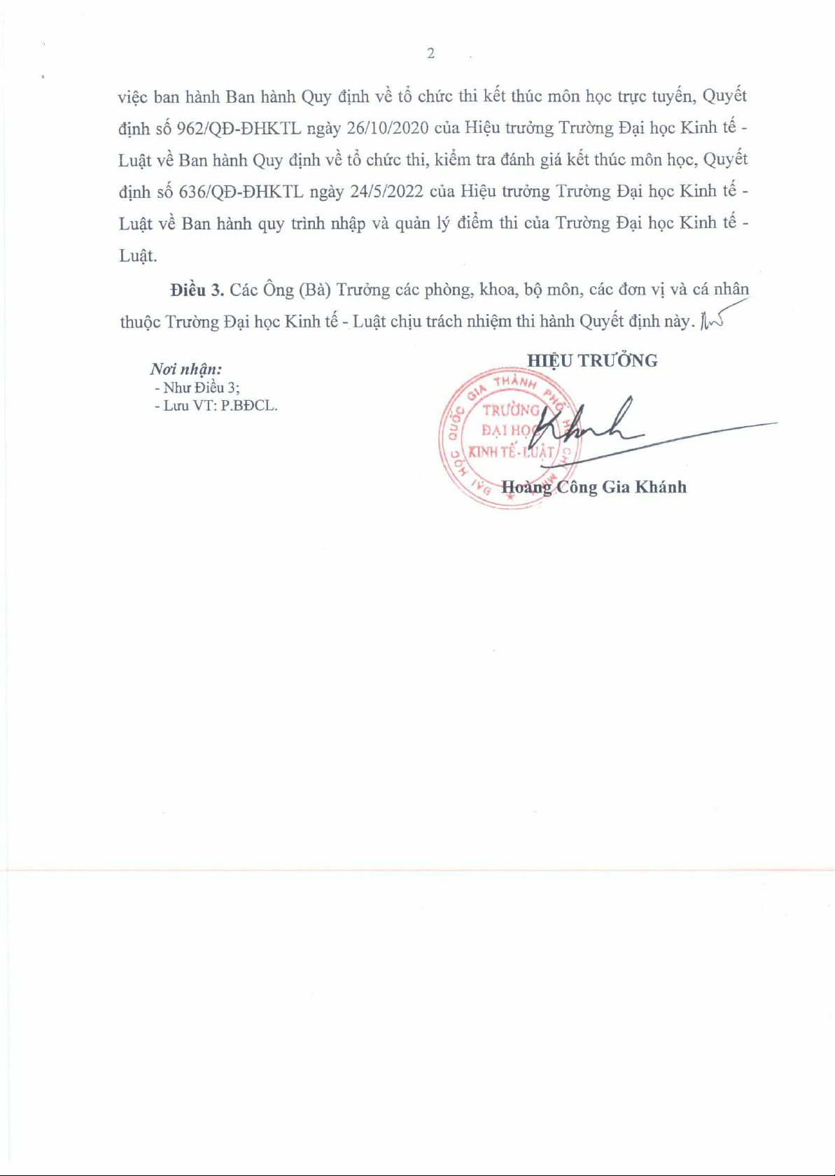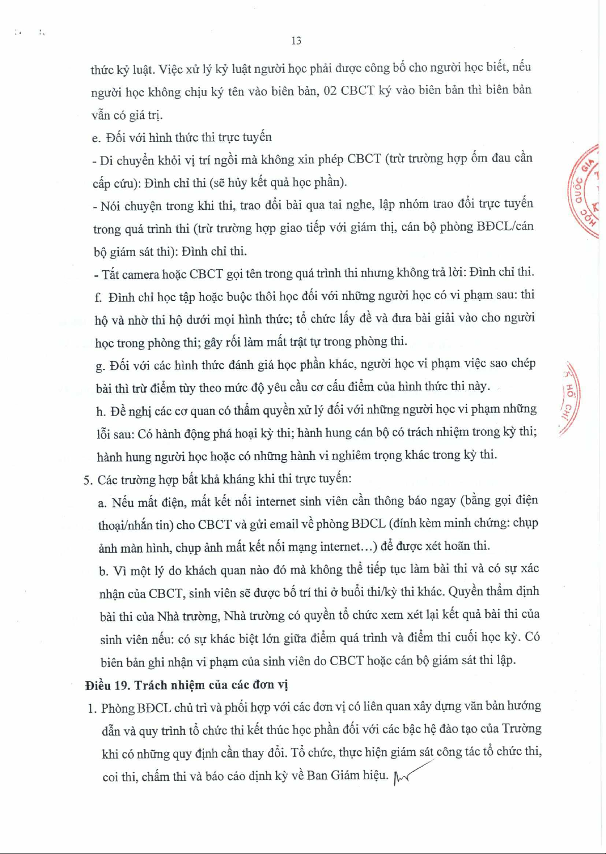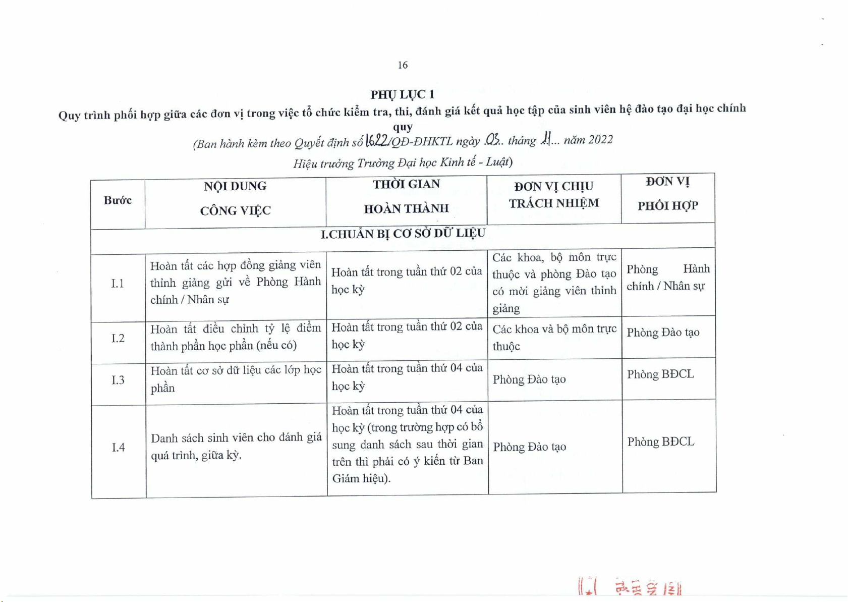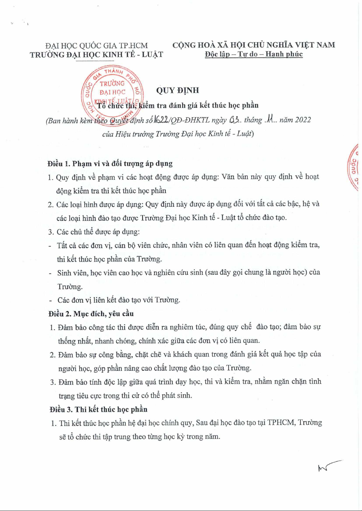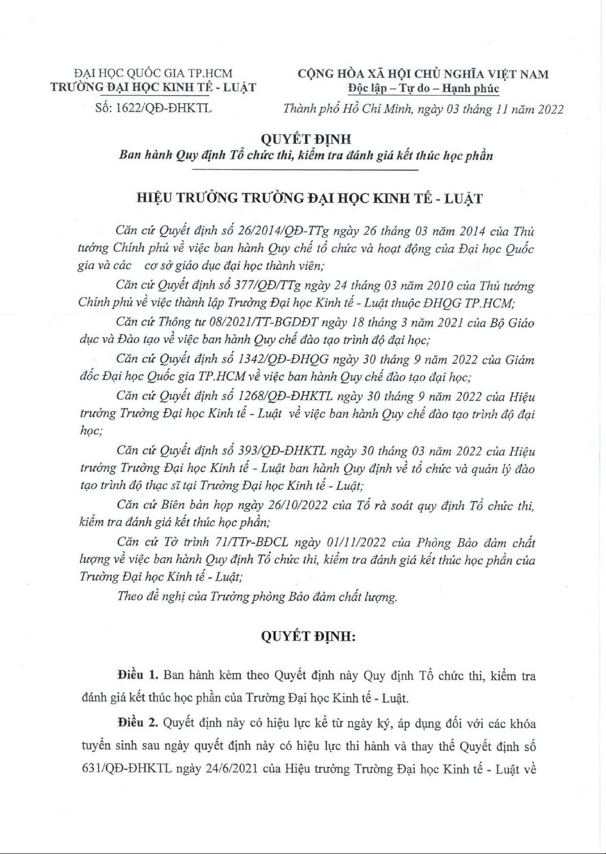 Quyết định 1622 - Quy định Tổ chức thi kiểm tra đánh giá học phần