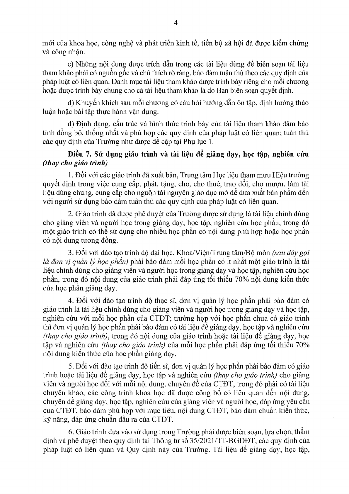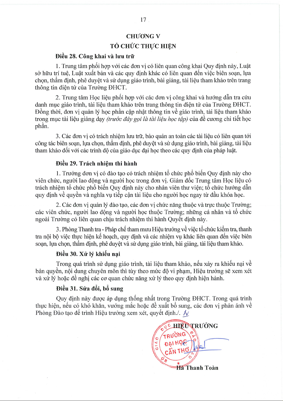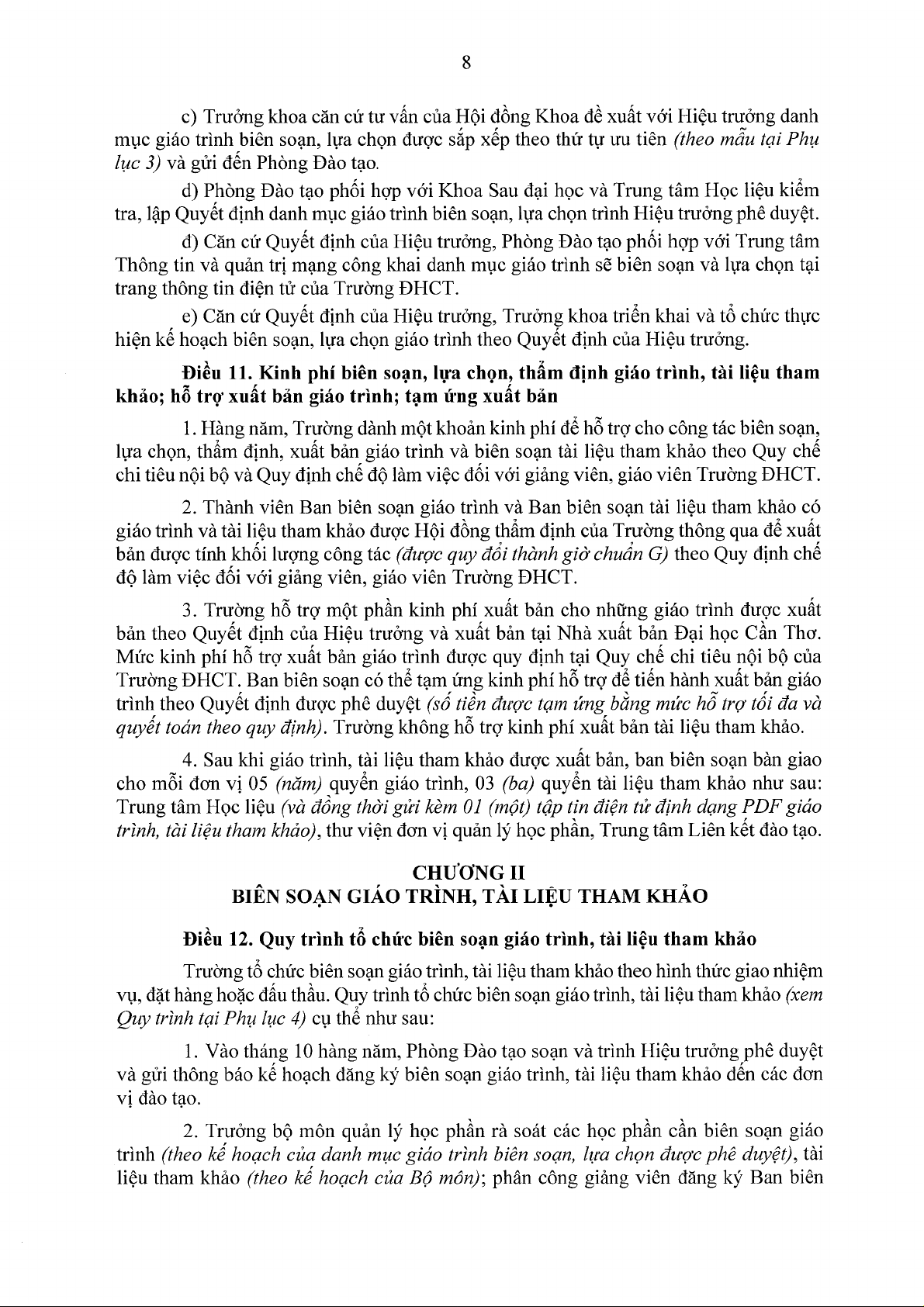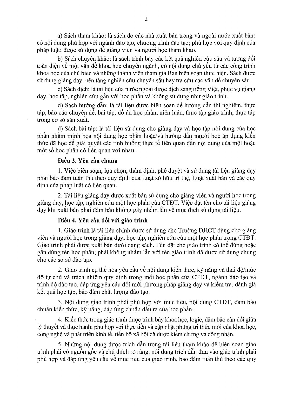 Quyết định Ban hành quy định về việc biên soạn, lựa chọn, thẩm định, duyệt và sử dụng giáo trình, bài giảng, tài liệu tham khảo của Trường Đại học Cần Thơ
