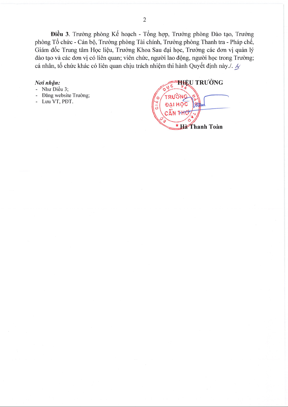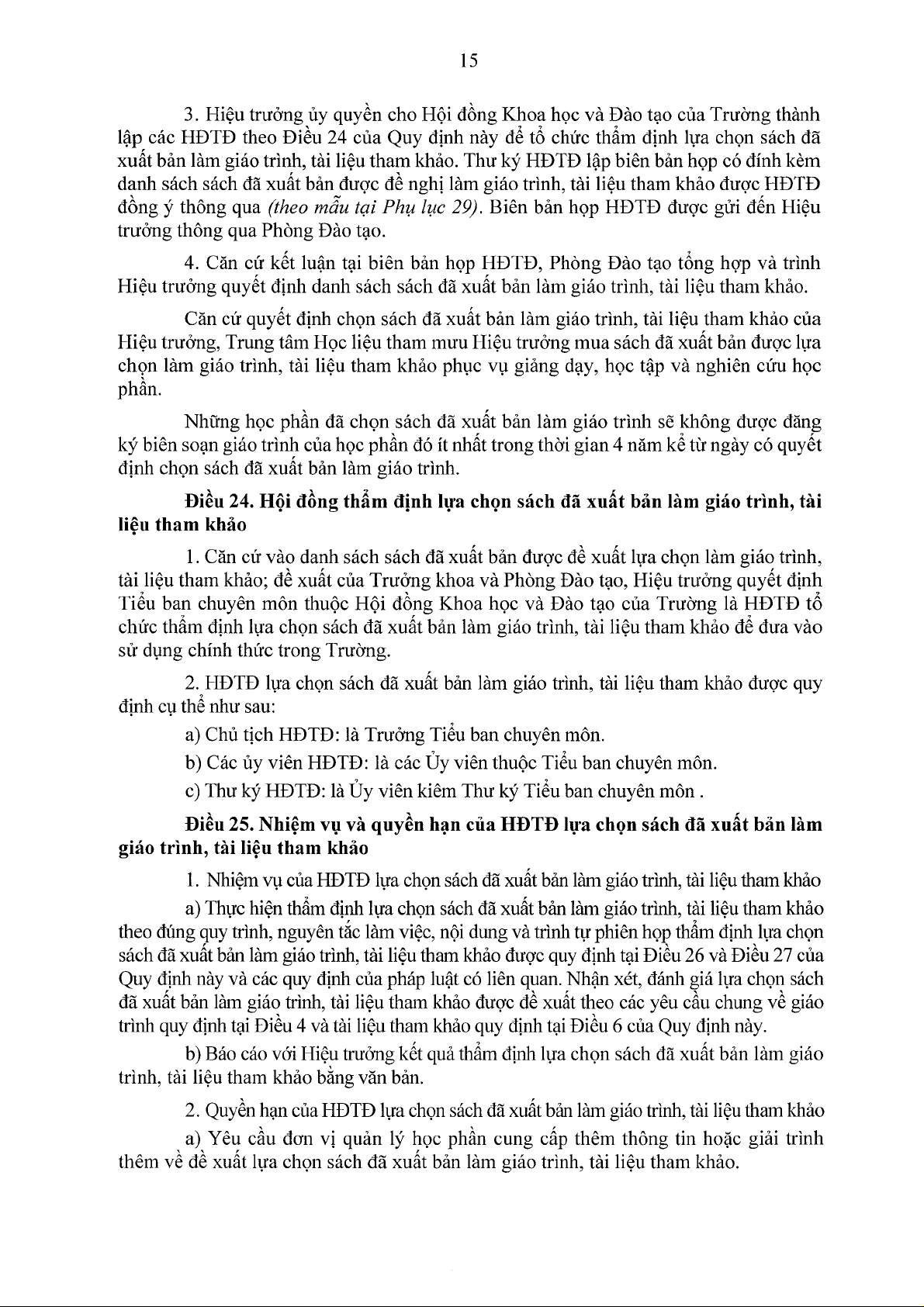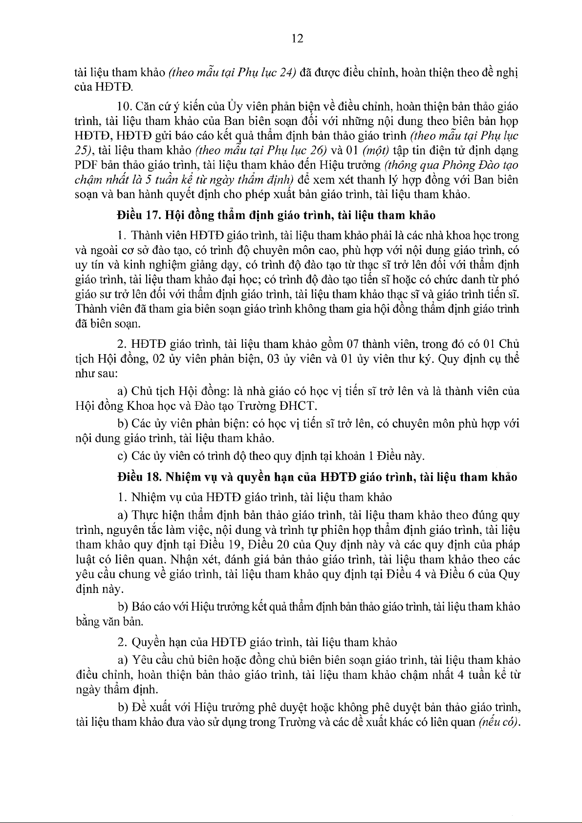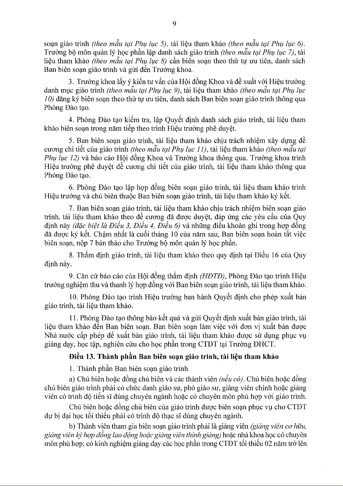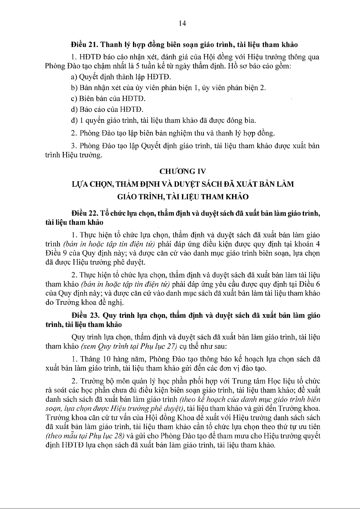 Quyết định Ban hành quy định về việc biên soạn, lựa chọn, thẩm định, duyệt và sử dụng giáo trình, bài giảng, tài liệu tham khảo của Trường Đại học Cần Thơ