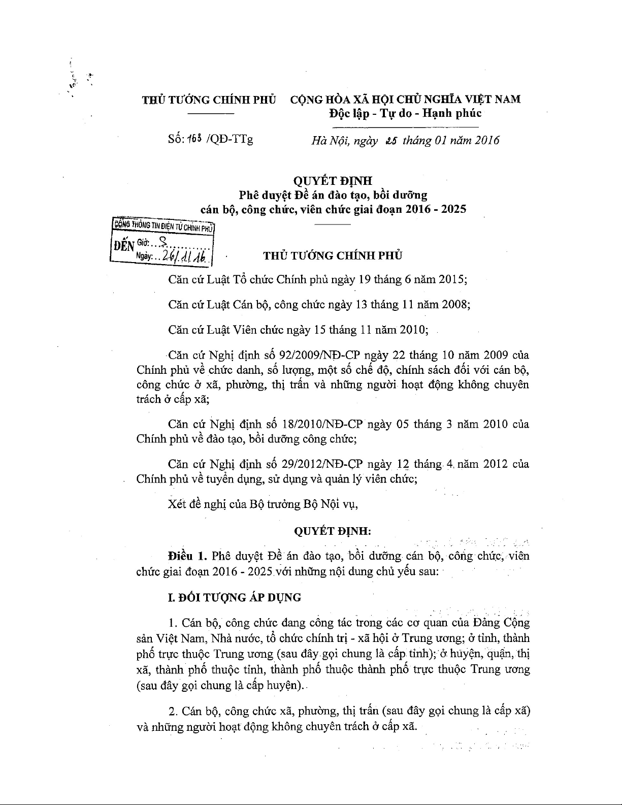 Quyết định phê duyệt Đề án đào tạo, bồi dưỡng cán bộ, công chức, viên chức giai đoạn 2016 - 2025 | Học viện Hành chính Quốc gia