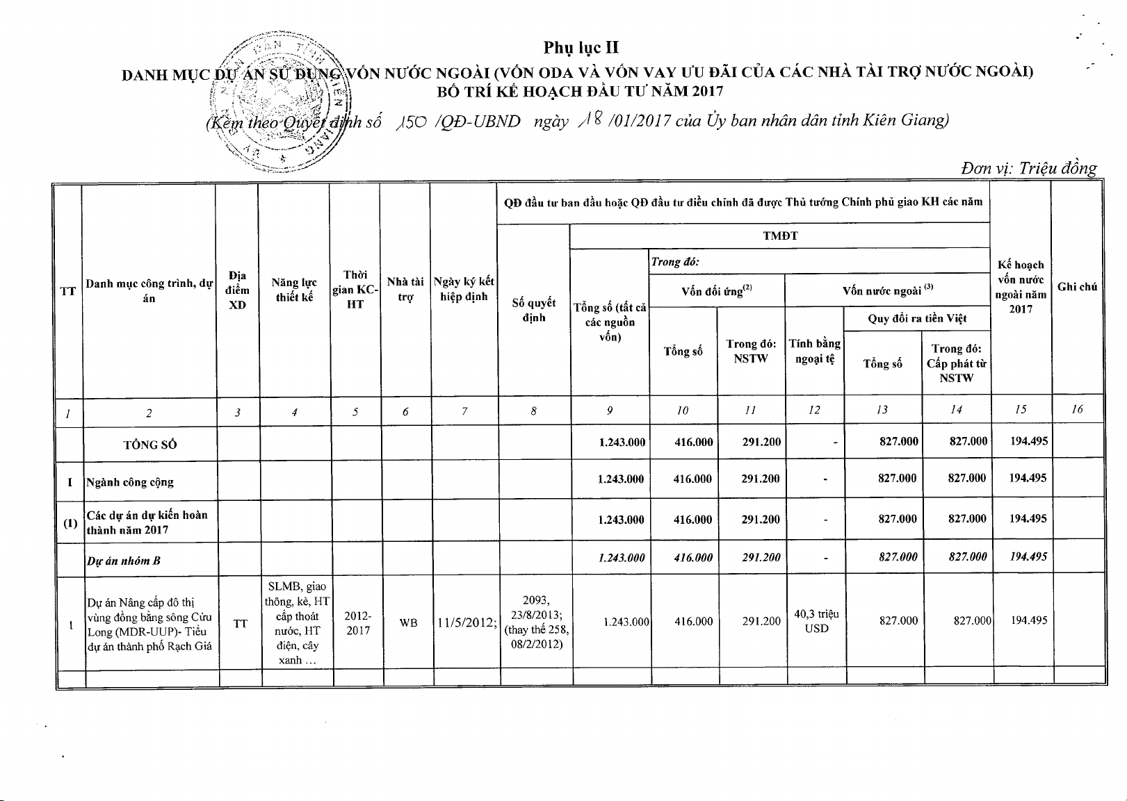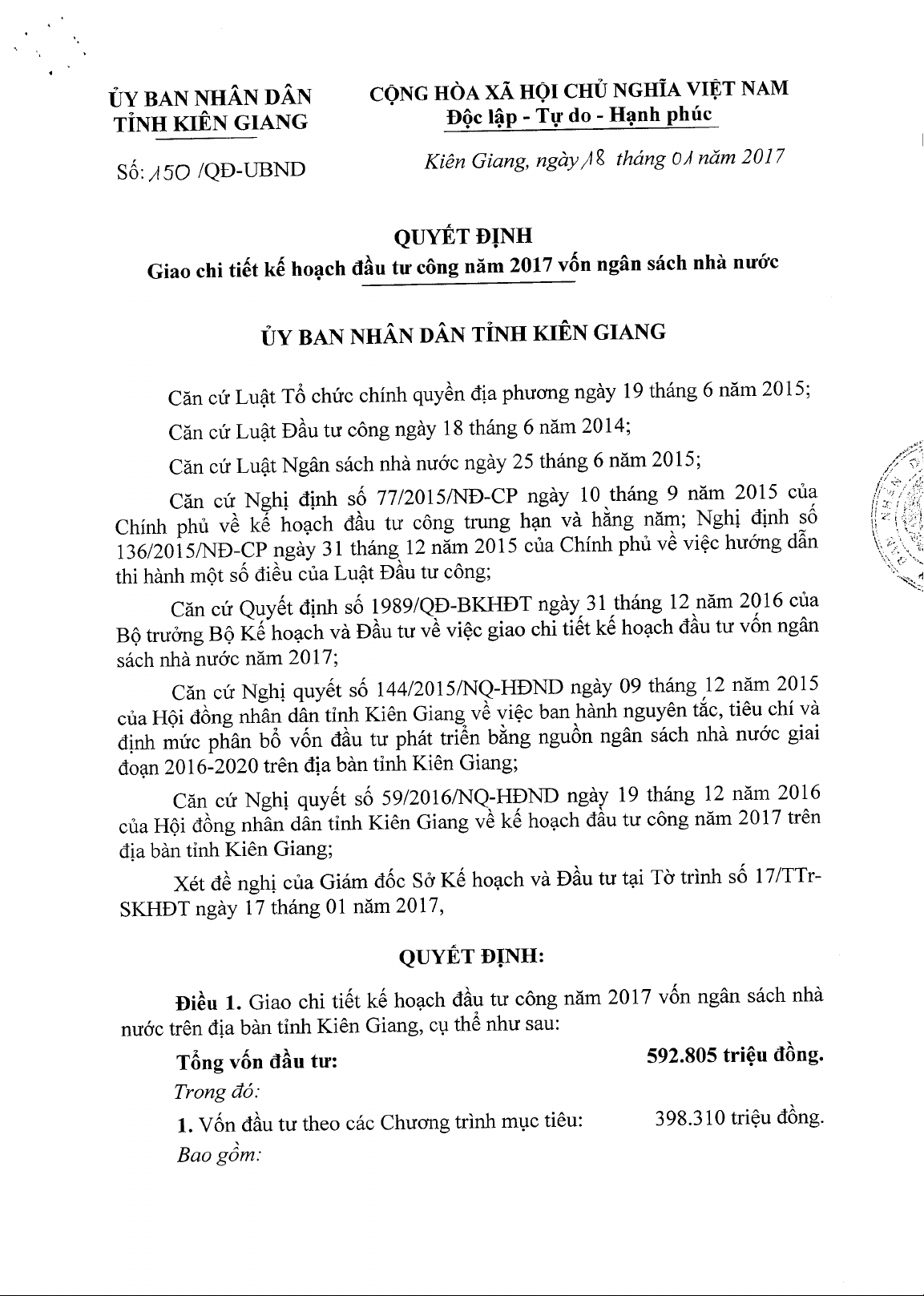 Quyết định số 150/QĐ-UBND ngày 16/01/2017 về việc giao kế hoạch vốn đầu tư phát triển nguồn ngân sách nhà nước năm 2017