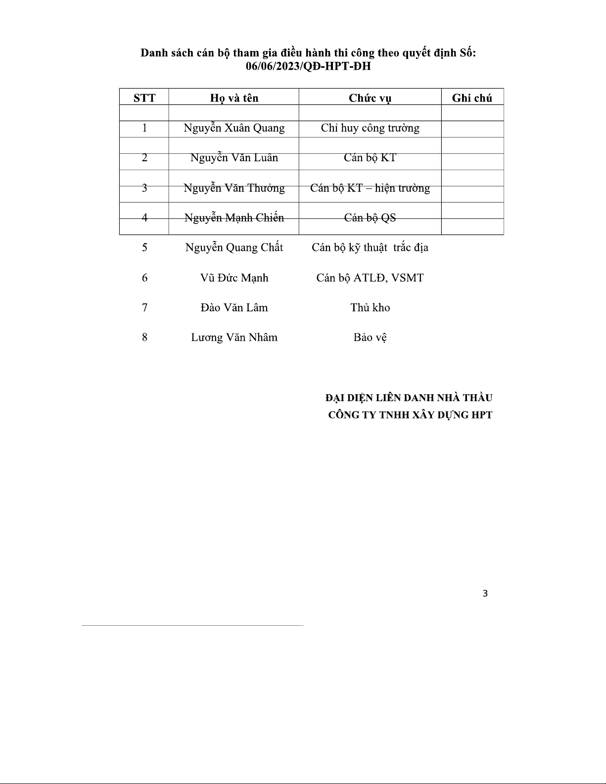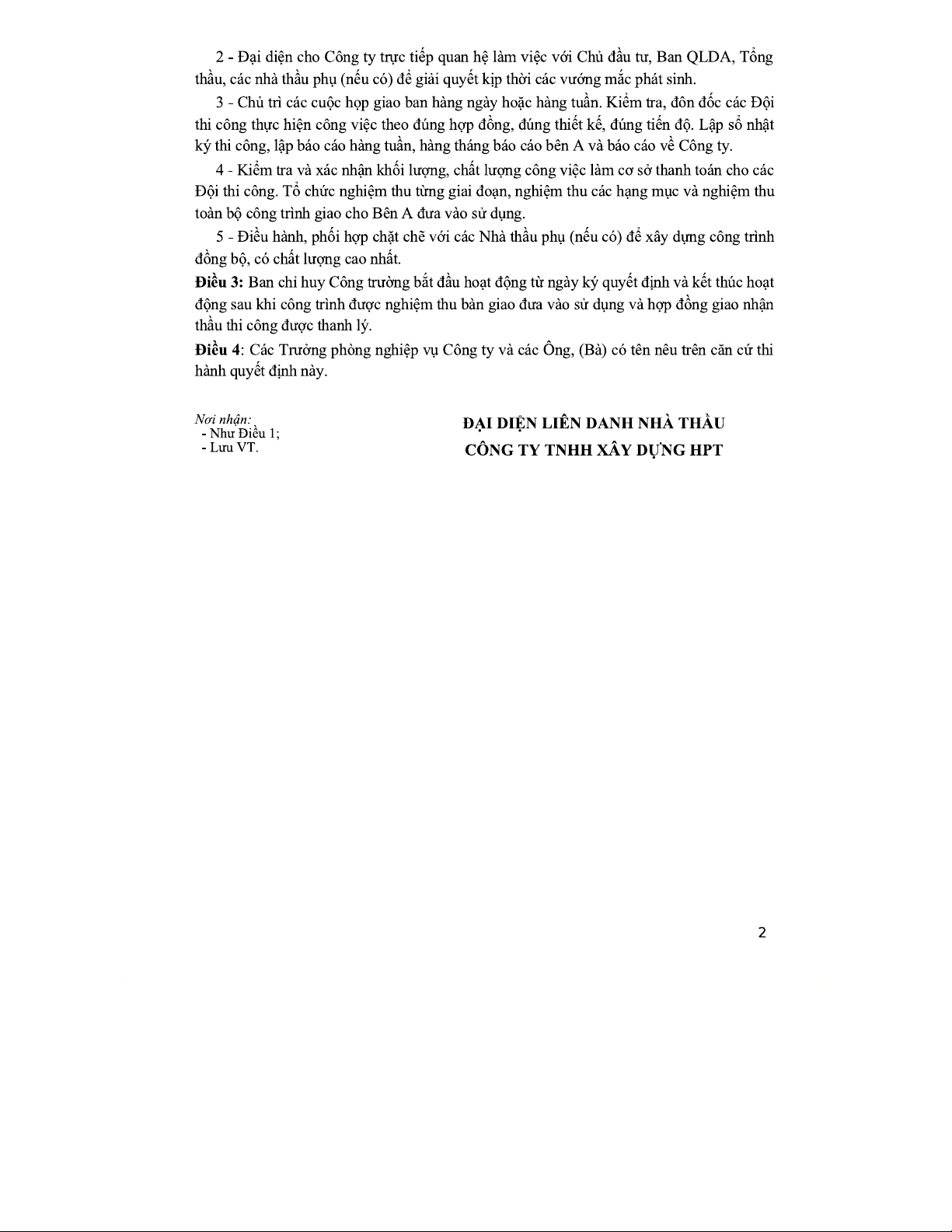 Quyết định Thành Lập Ban Chỉ Huy Công Trường - HPT & Đông Hưng