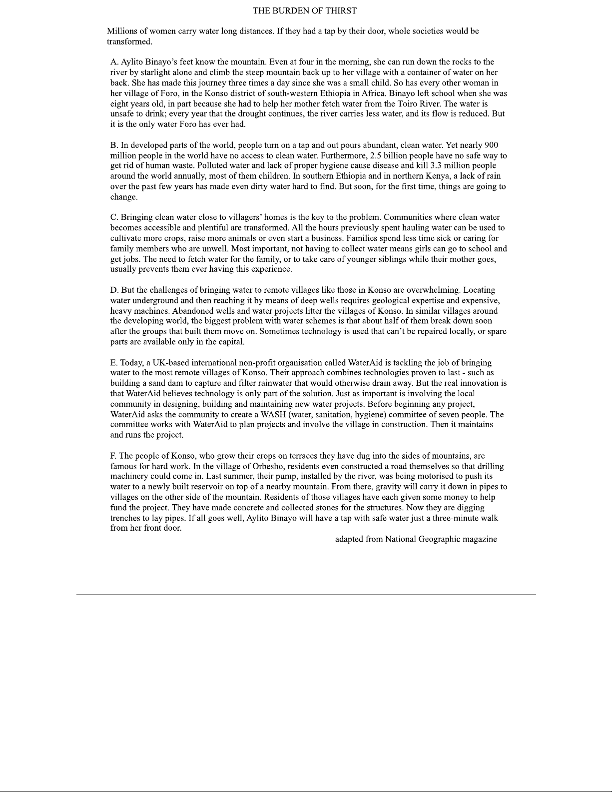 Reading 1: The Burden of Thirst - Access to Clean Water in Ethiopia