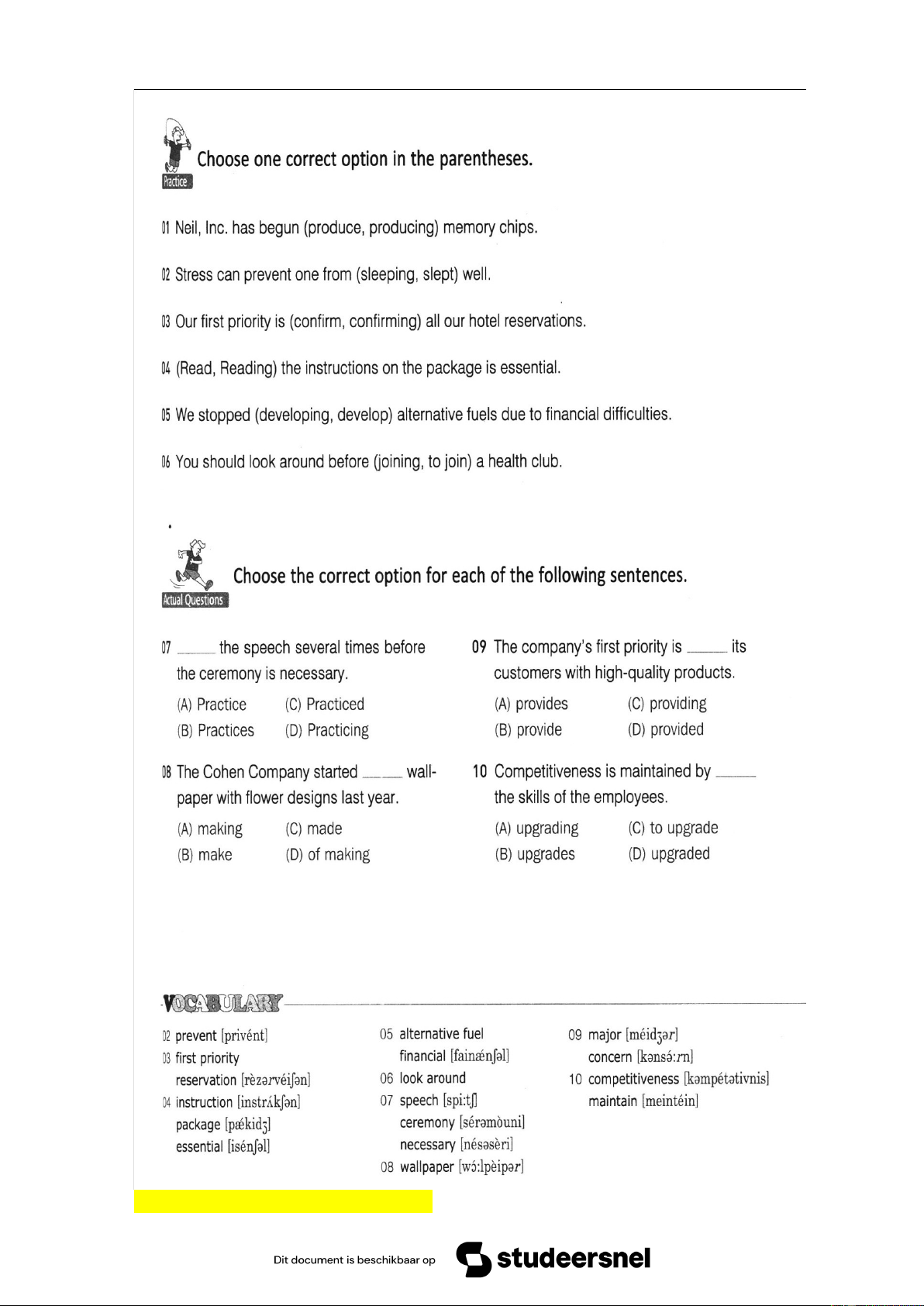 1. ____________ the restaurant will B. participating attract more customers. C. to participating A. Renovation D. participated B. Renovating