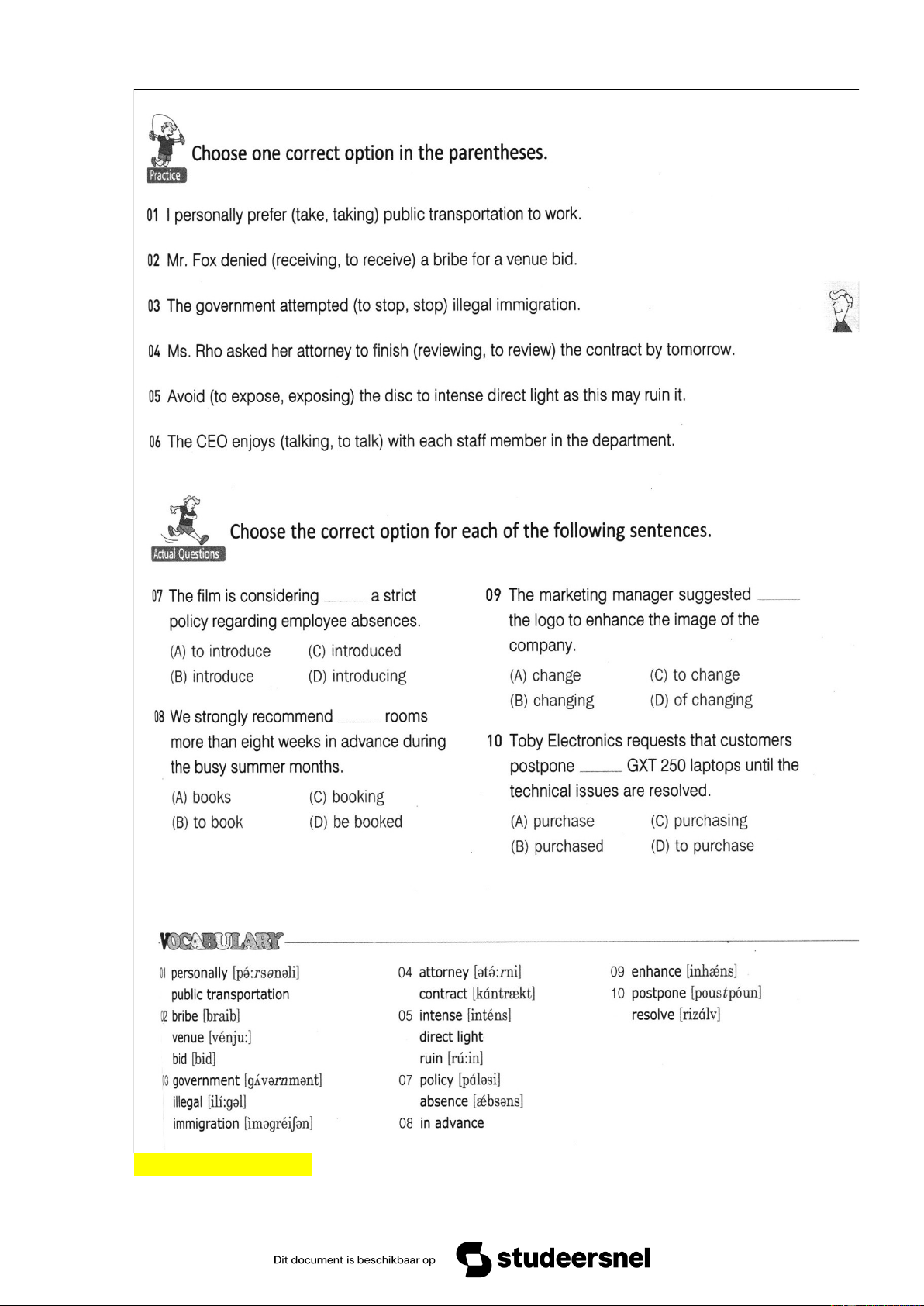 1. Mr. Kim worked hard ____________ a promotion. A. to get B. getting C. got D. get 4